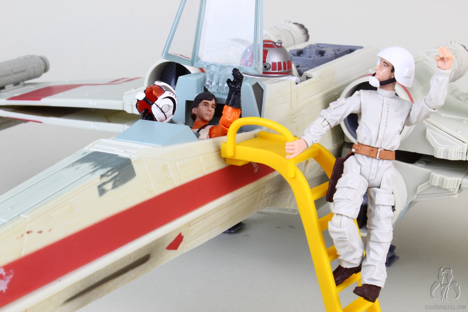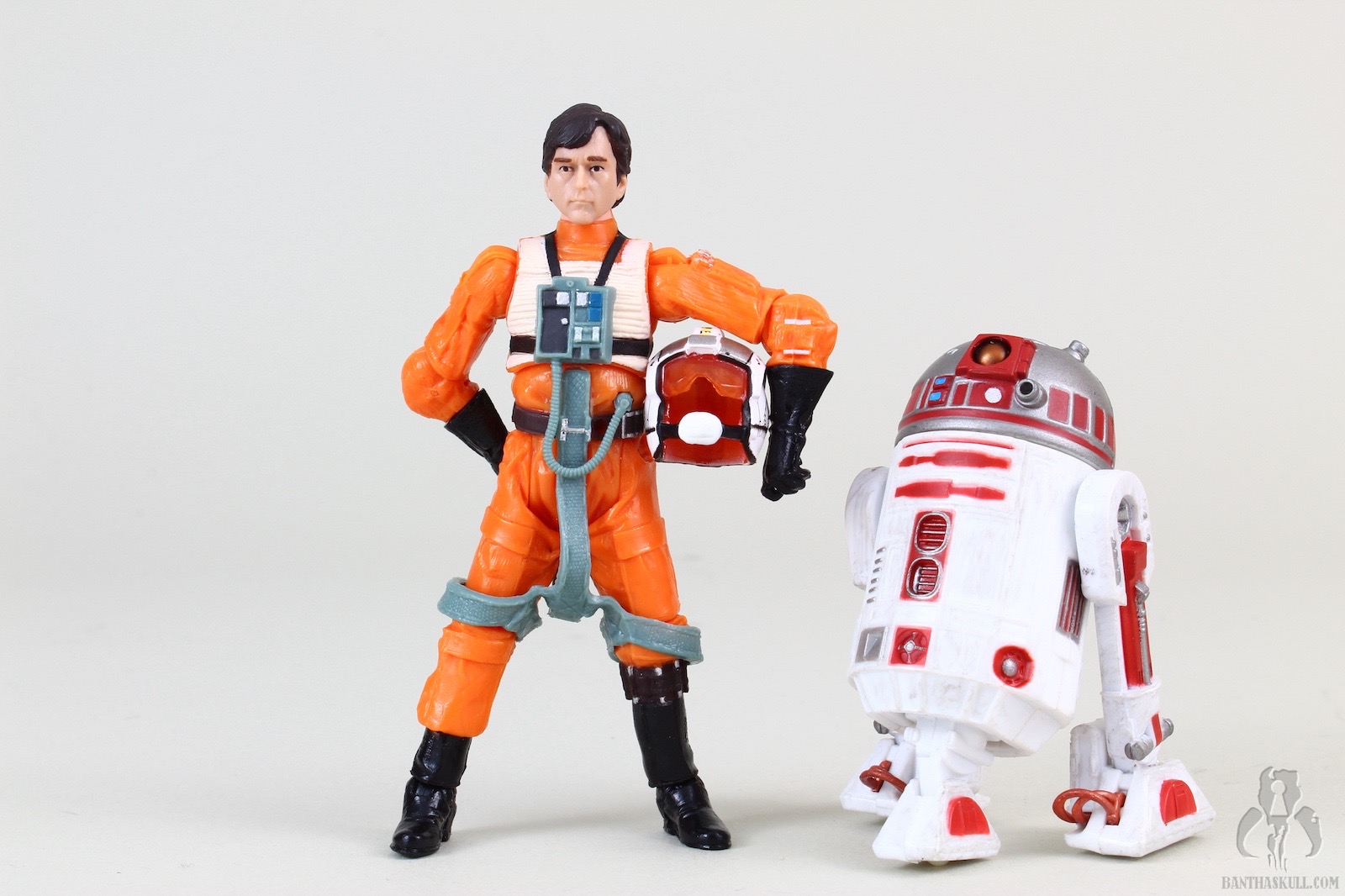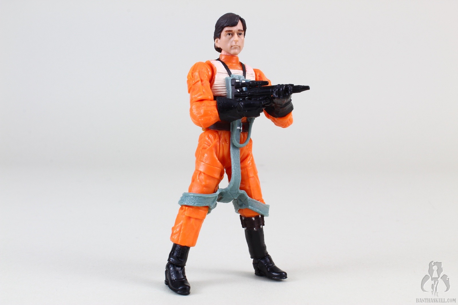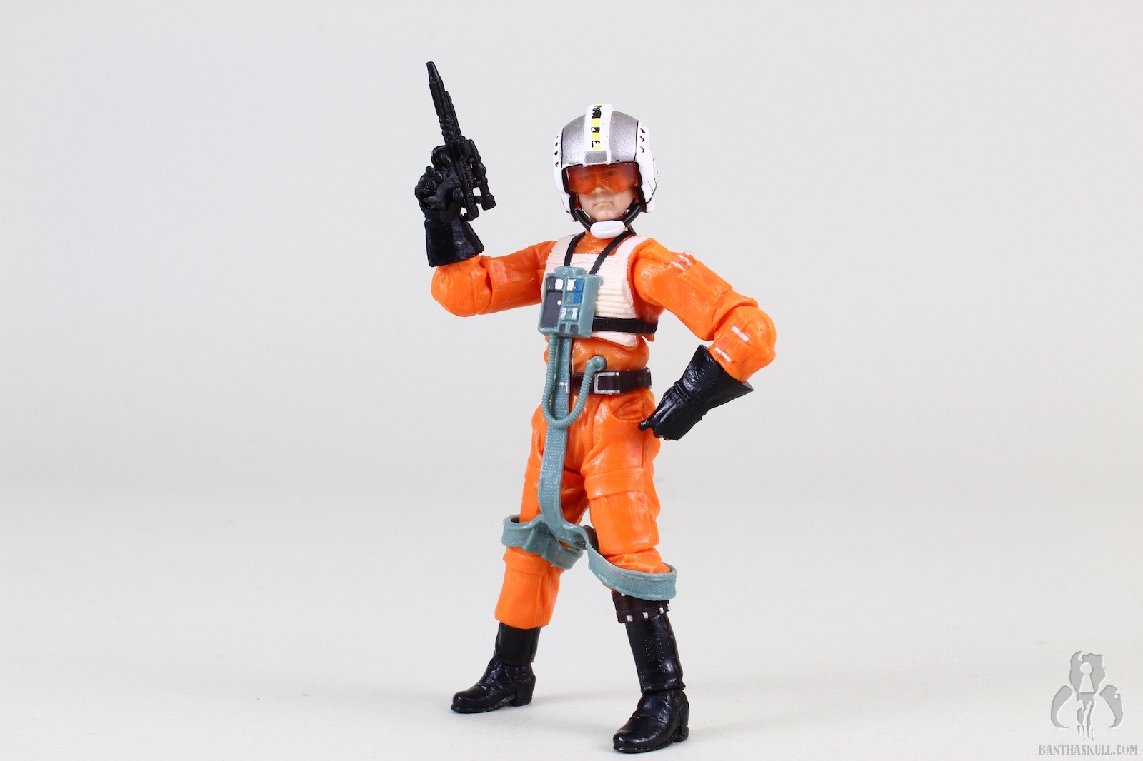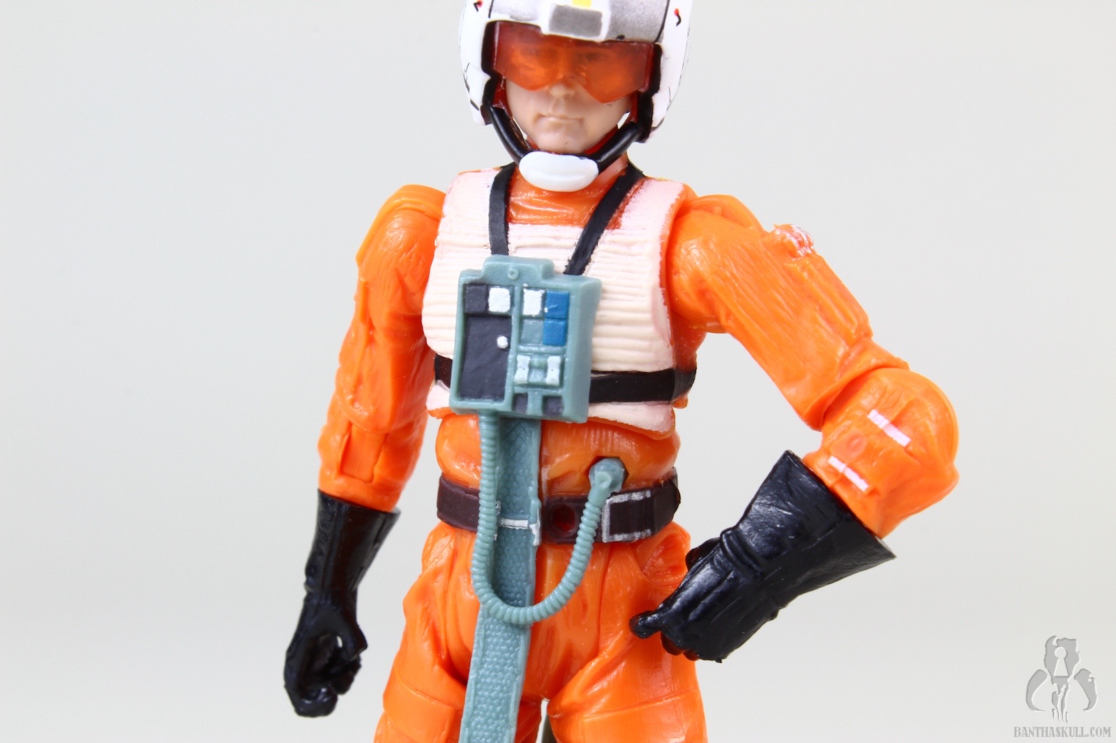 Wedge Antilles had a whole bunch of drama surrounding his release in TVC. After some fits, starts, fakery, and shenanigans, VC28 was finally released in much later waves than originally intended. What collectors got for their patience (just kidding, collectors have no patience) was a retooled X-Wing pilot body, including the lightsaber peg hole in the belt. Oh well. It’s not perfect, but it’s still a great figure. If you take away all the drama surrounding the delayed release and subsequent acquisition difficulties, what you have is a solid, super-articulated, well painted pilot figure, with a face that has a very good likeness to Denis Lawson and a helmet that is extremely well decorated. The blaster (which lacks a holster of any kind, as is typical of Rebel pilots) fits very snugly in Wedge’s hand, which includes a floating index finger for the trigger. Wedge can even perform the vaunted THWG. Neat-o!