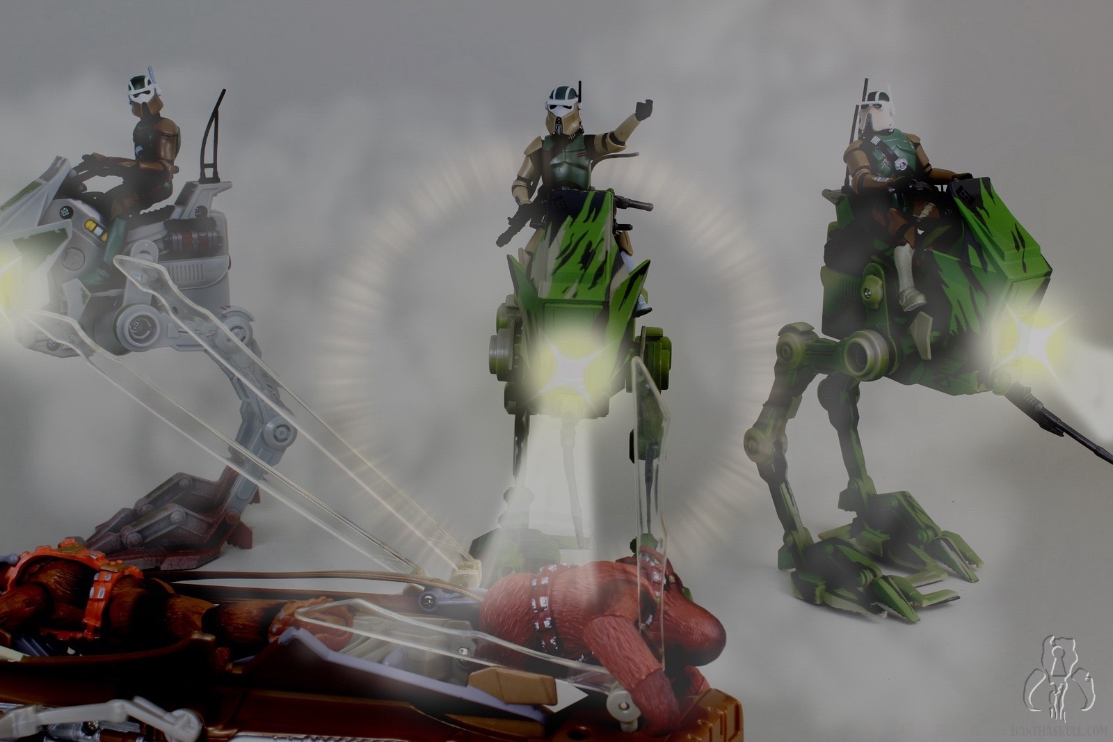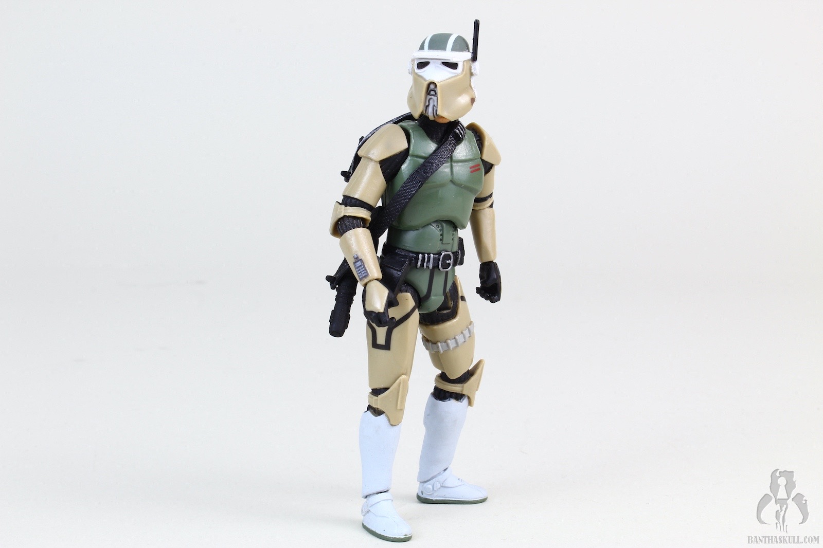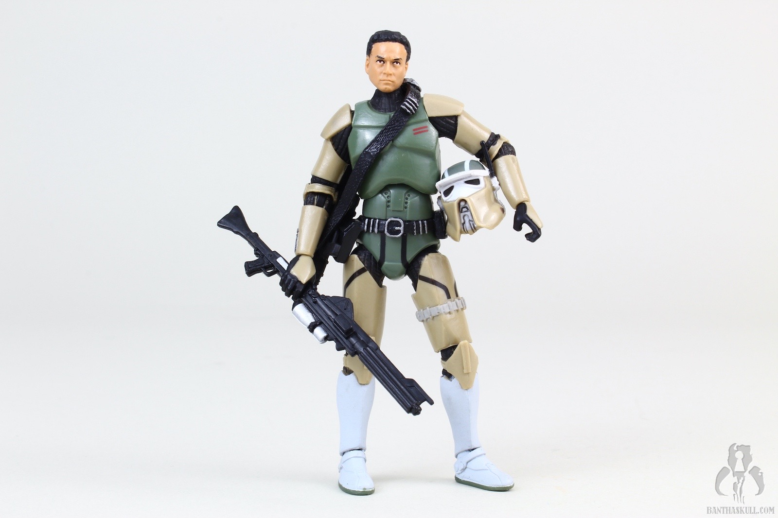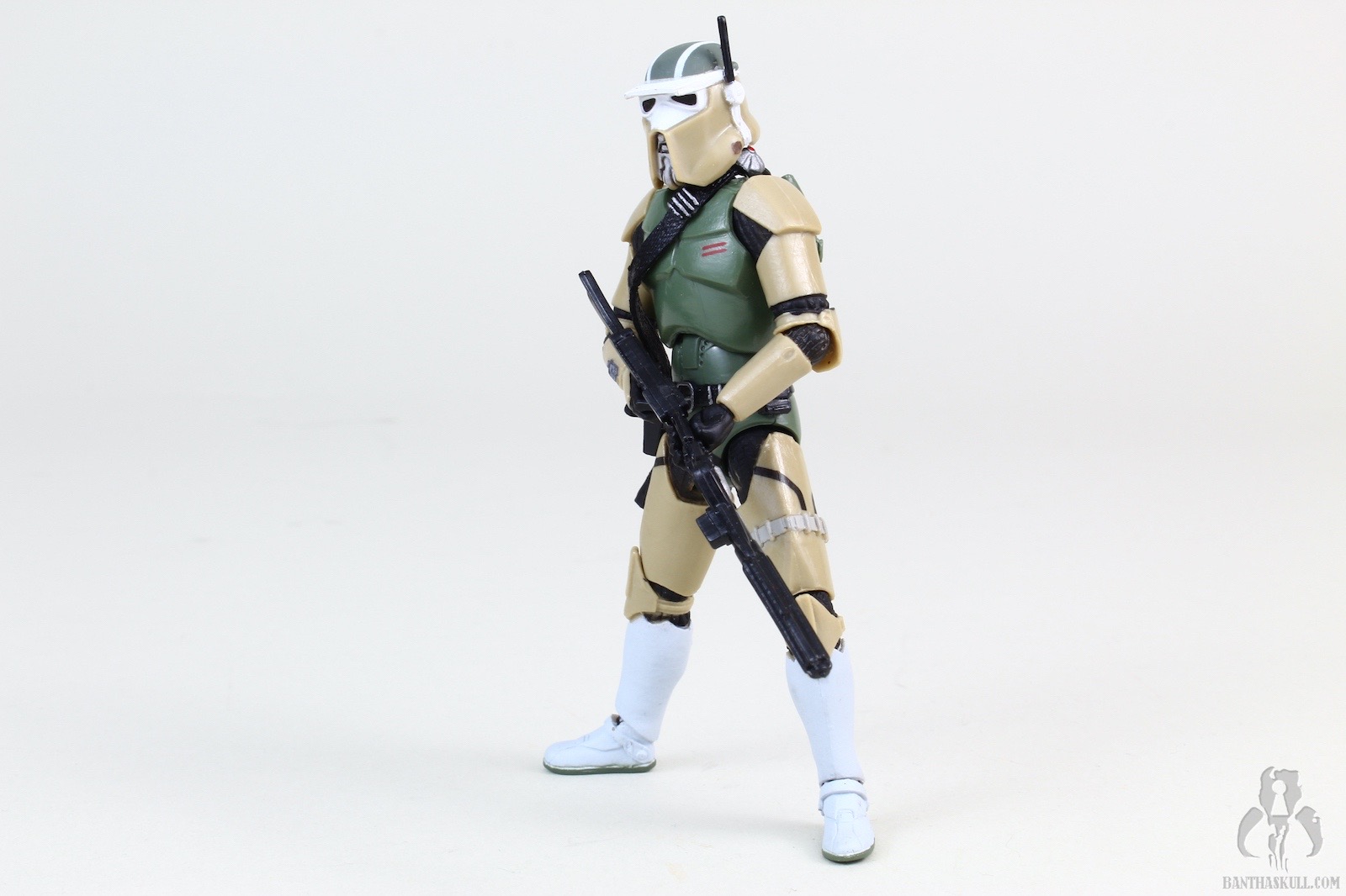 The sculpt and paint applications are excellent. While removable helmets are usually frowned upon by most collectors, it works well with this particular figure. The articulation allows for a variety of poses, including the sitting position required to interact with the AT-RT, although yes, it’s a little frustrating to get it there due to the hips. The driver comes with a pair of weapons, including an unusual type that slings over his shoulder. The figure is able to perform a THWG, so that’s a big plus.