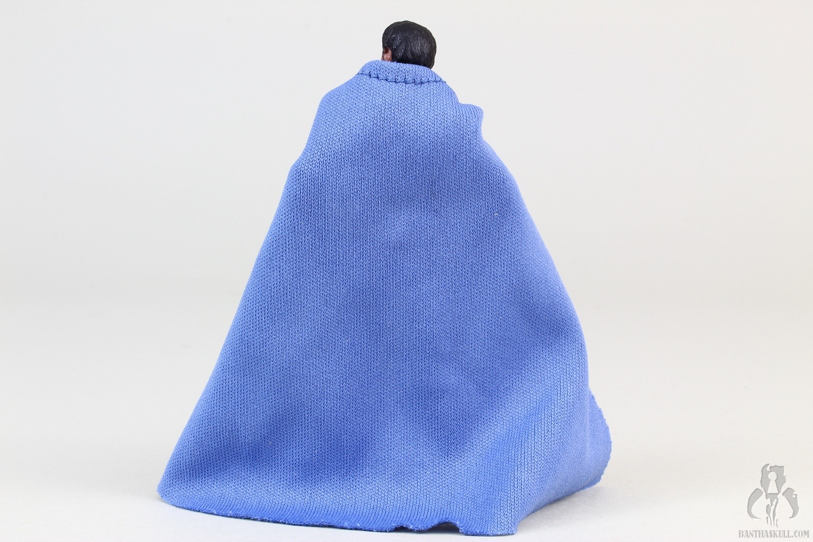The soft goods cape is a bit of a failure because of the strap. For some reason, the strap is a piece of elastic, but that elasticity is not needed. You don’t need to stretch the opening of the cape for any reason. A thinner non elastic clasp would not have affected the functionality and would have greatly improved the appearance. Aside from the cape, there’s not much to complain about. I’m not sure the ball joint hips add a lot to what you’d use this figure for, but at least you can replicate the wide stance of the POTF2 figure if you were so inclined.