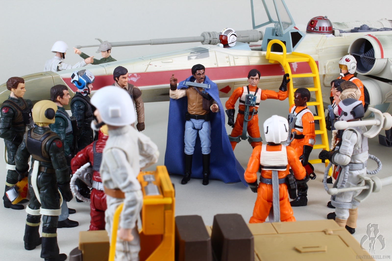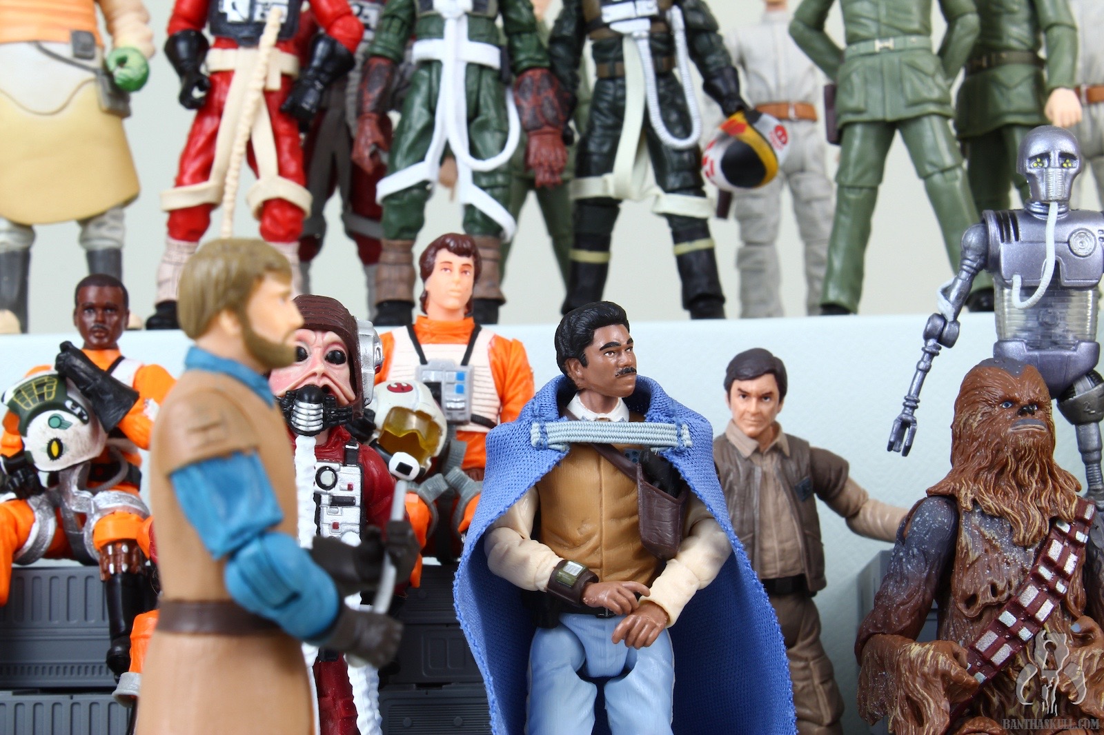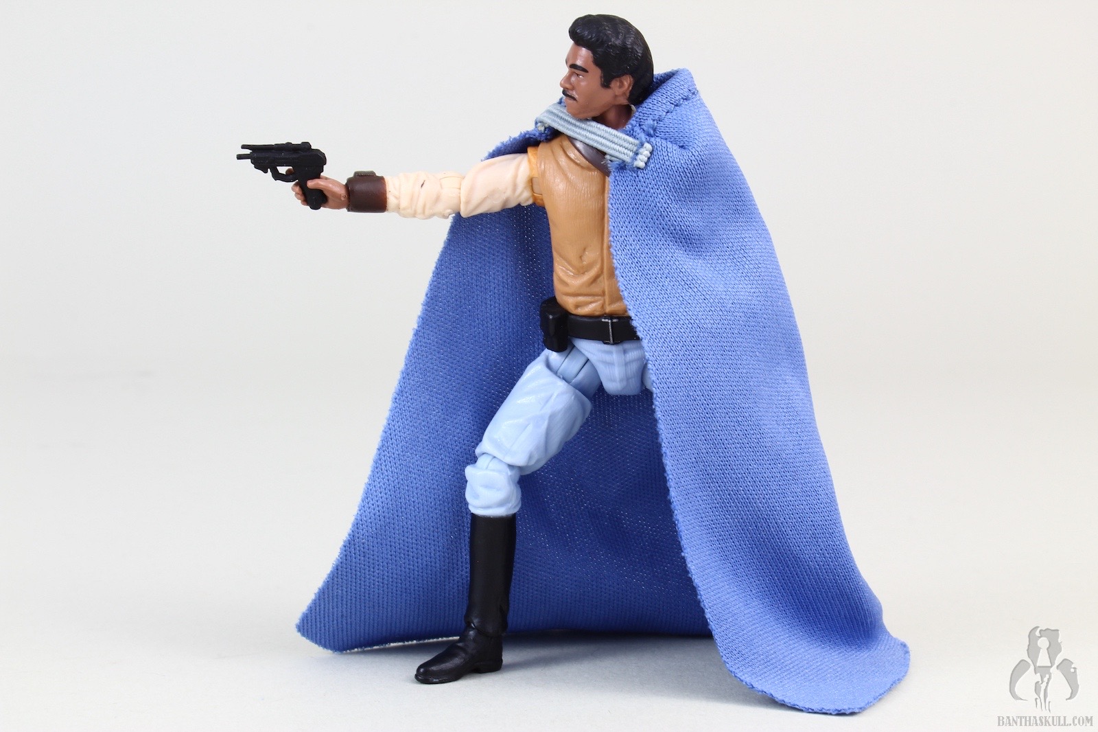 Chris pretty much nailed it, short and sweet. The cape is the biggest letdown, but it’s not awful. The removable holster allows you to recreate the briefing and the space battle scenes. I was about to take pictures of the ewok celebration, until I realized from reading Chris’s review that the outfit is slightly modified because he unbuttons the collar. Kind of the opposite of what Han did for the Yavin ceremony. Well, it would be annoying if Hasbro released this exact figure and titled it “Lando Calrissian (Ewok Celebration)”, but fortunately, they didn’t. They could release a variant, with clapping action feature. Yeah!