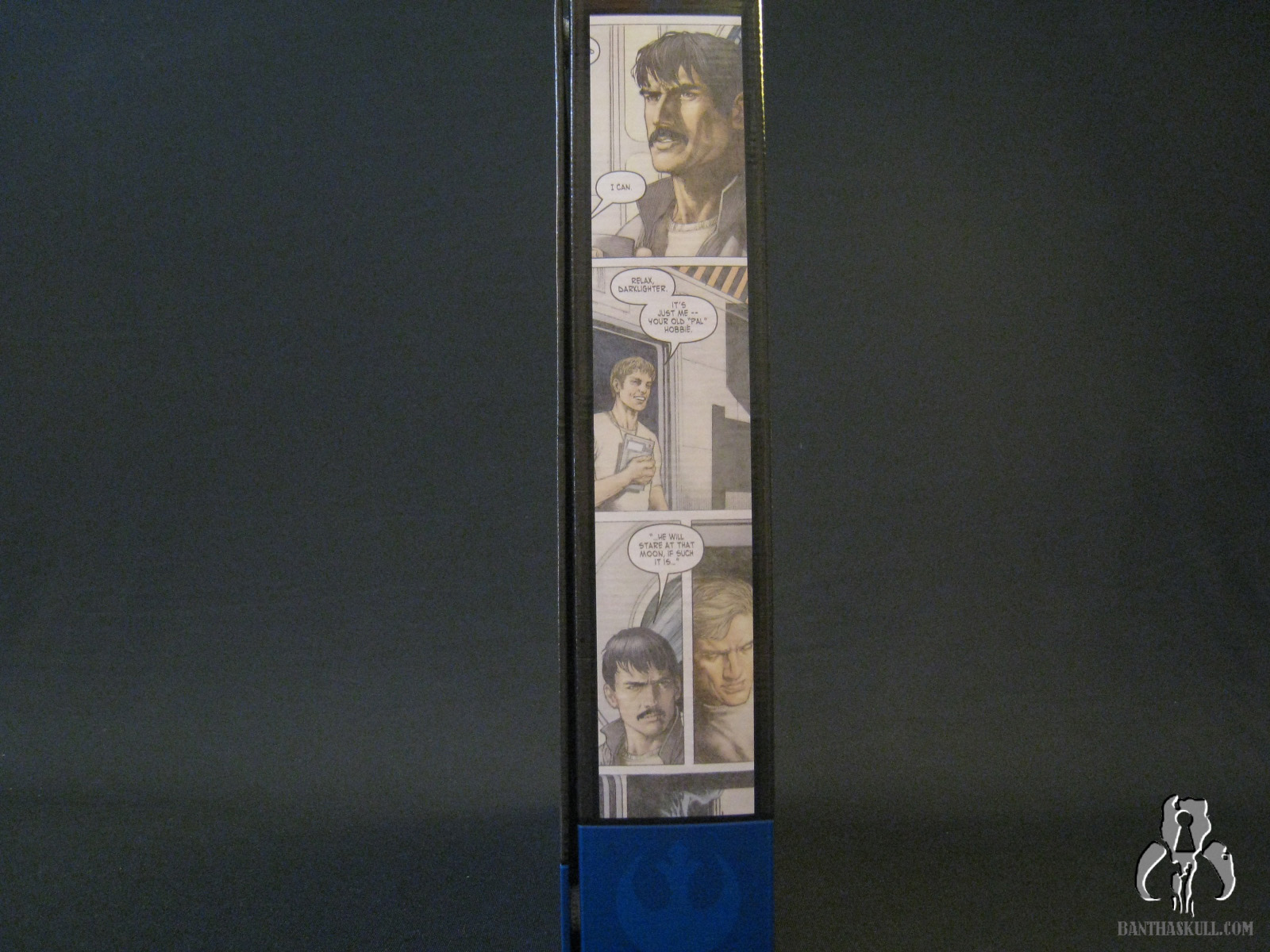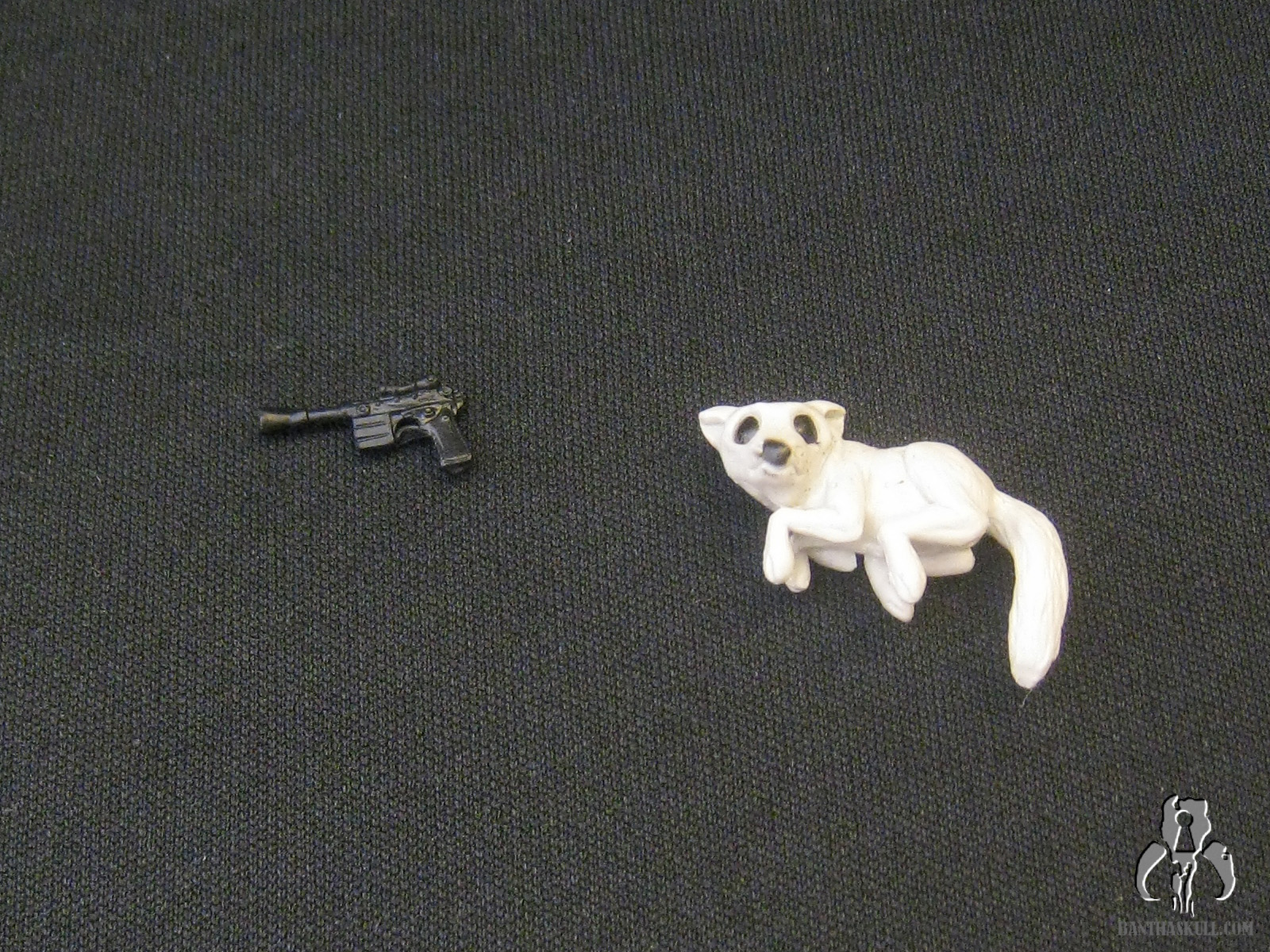 The figures themselves aren’t particularly exciting, but they’re pretty much as good as they can be for what they represent. They have decent articulation, but lack ankle joints. Normally, this is a killer for me, but in this set, I’m fine with it. They are dressed just as they are in the cutscene, except Fixer comes with a weapon instead of binoculars, because, well every action figure needs a weapon. Following that logic, Camie has a dog-fox-rabbit-weasel animal as a weapon. It’s cute. I have no idea what it’s supposed to be, but I’m sure somewhere in the EU, the animal has a species identified along with a home planet and a name. (I’ll have to check Banthapedia later to see if this is the case.) Actually, I should probably read the included comic. I’ll get back to you on this. (Hey look, there it is!) Anyway, the paint is simple but effective. The face sculpts are pretty good. Camie is not nearly as pretty as the actress, but Fixer looks somewhat like the actor, as far as I can tell. One other thing is that the set says “Camie Marstrap” I can’t find any reference to “Marstrap” on Banthapedia, so it’s probably a crazy mistake by Hasbro. At some point after their deleted scene, Camie and Laze “Fixer” Loneozner got married, and that’s all anyone remembers when it comes to her last name.