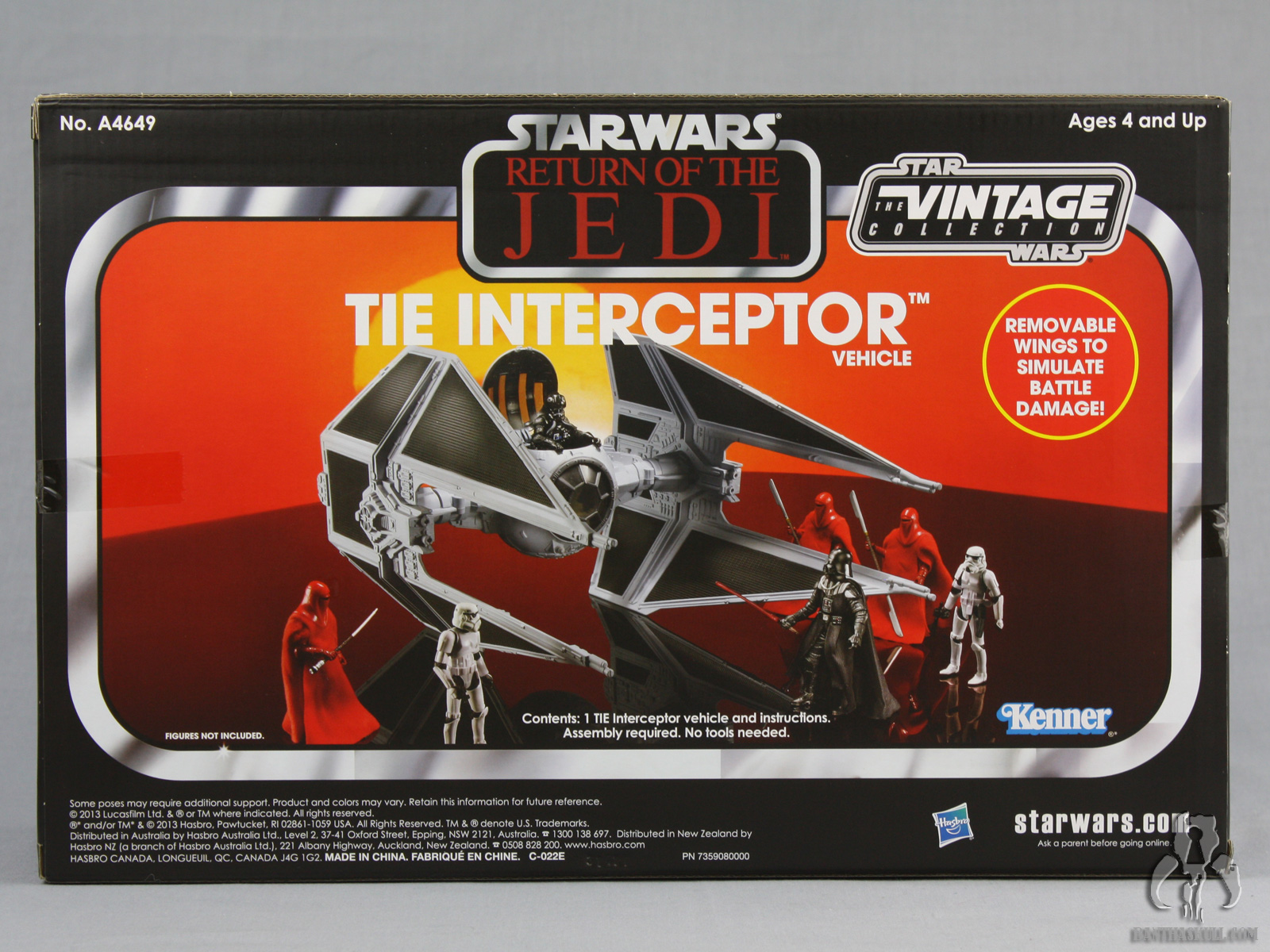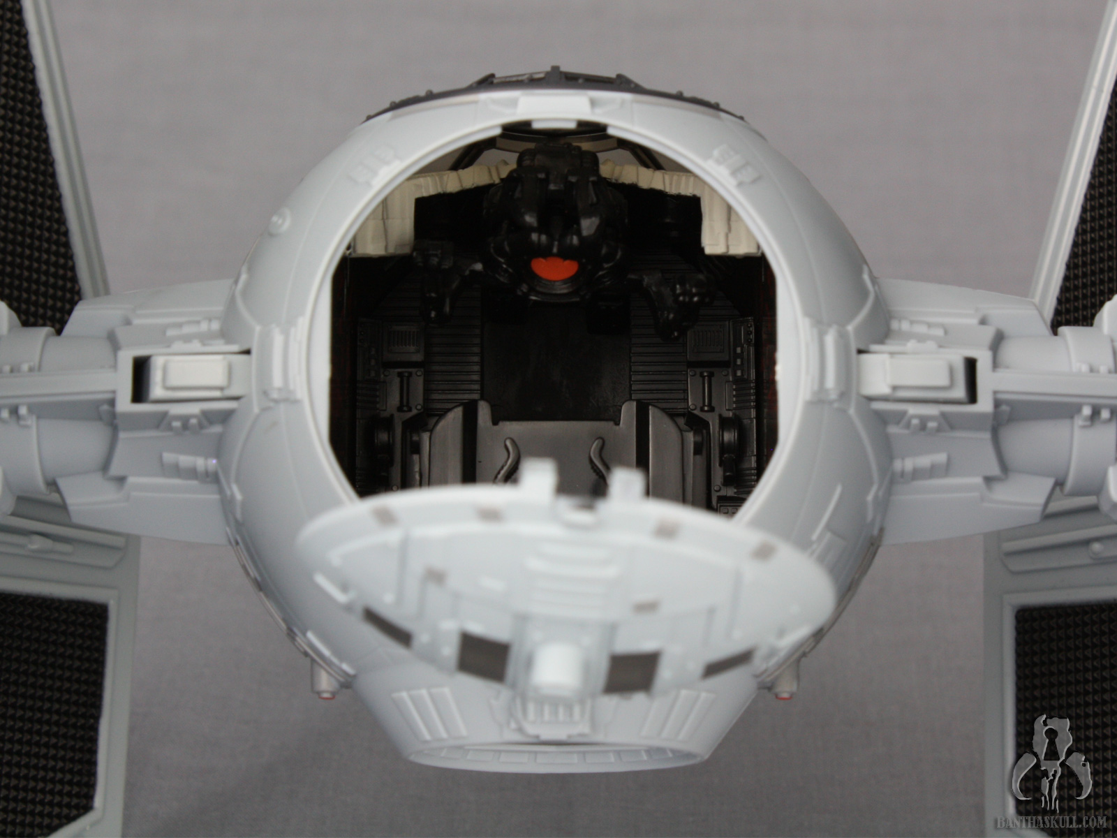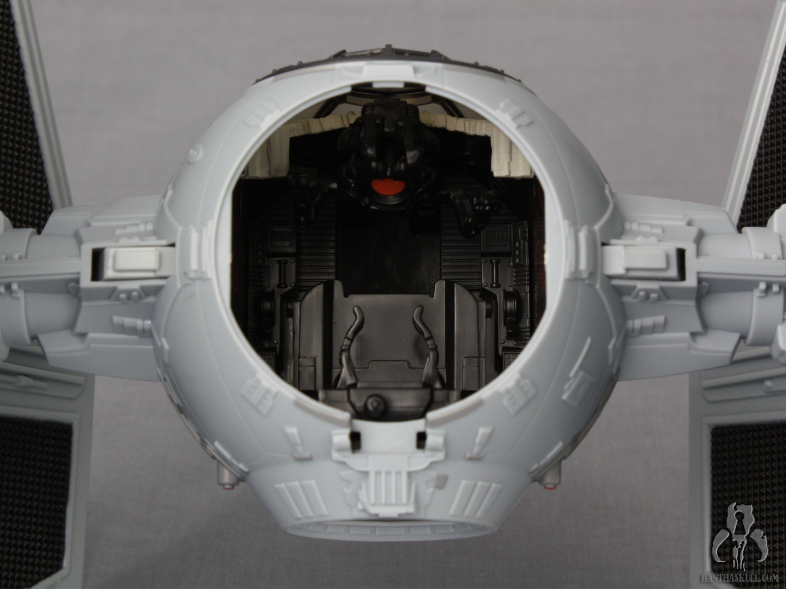 Hasbro has weighed in on this debate by supporting all candidates. I don’t think that any two TIE Fighter releases have used the same color scheme. This particular TIE interceptor release returns to a light gray color scheme. Aside from the changes to the color of the plastic and slightly different paint applications, I’m not sure if there is any difference between this release and its immediate predecessor, the Toys R Us exclusive Legacy Collection TIE Interceptor.