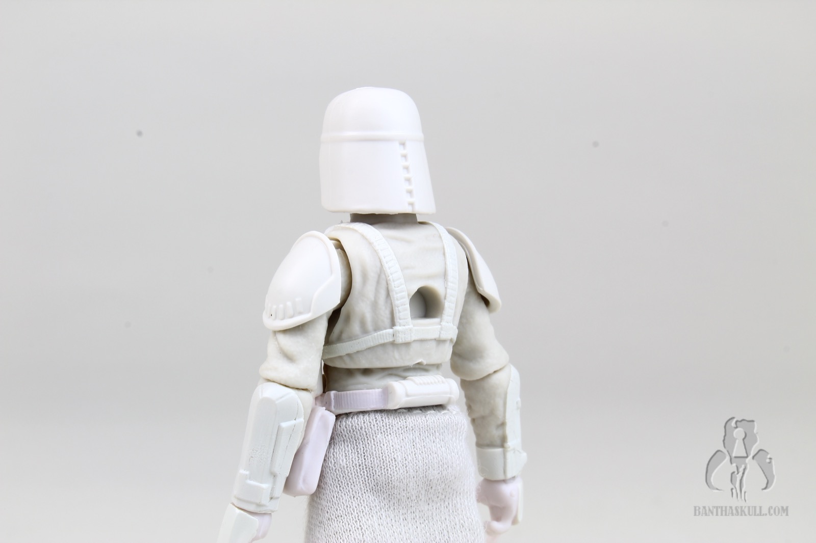 Also, of course, the coloring is different. It’s more of an off-white than the ESB armor. I assume this is to indicate age, because what was left of the Empire didn’t have the same resources to keep up their equipment as they did back at their peak. Remnant budgets are notoriously lean, of course. Interestingly (or frustratingly), while their armor had lost its luster, they seemed to do a better job of keeping their clothes and boots clean. Unlike the ESB Snowtrooper, this Remnant Snowtrooper has zero weathering, particularly on the boots. It’s obviously some corner-cutting on Hasbro’s part, but the in-universe explanation is that these guys took a lot of pride in keeping their boots clean.