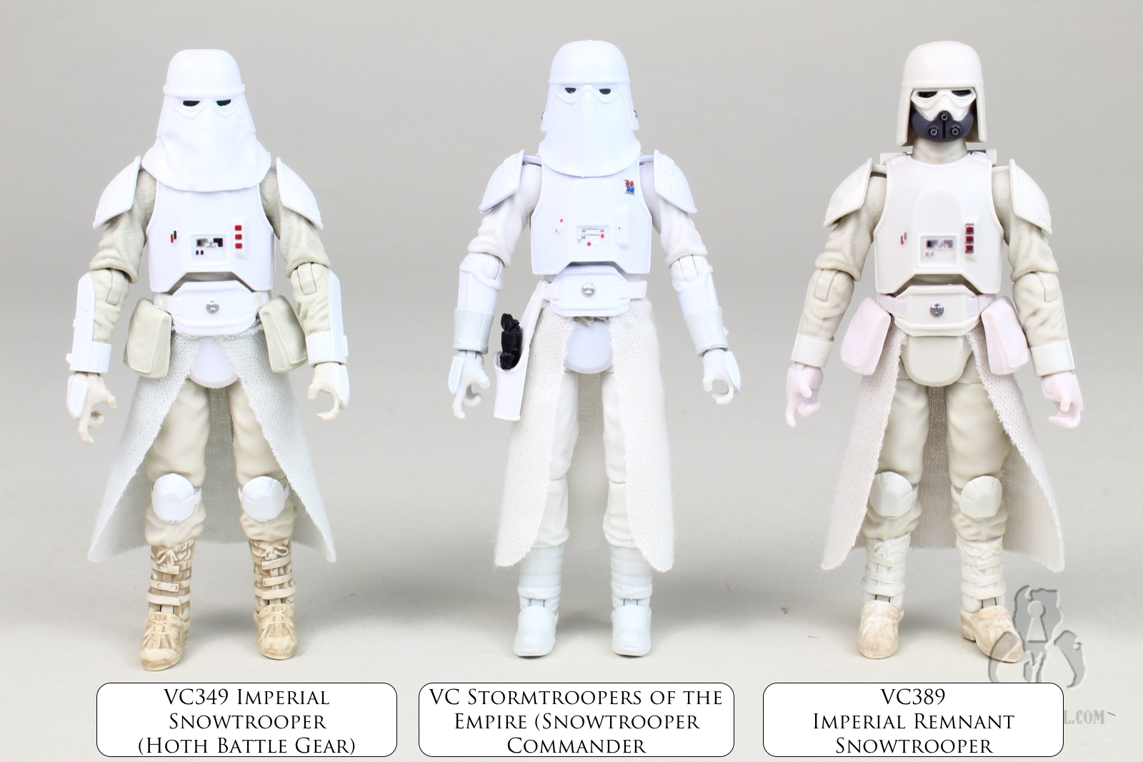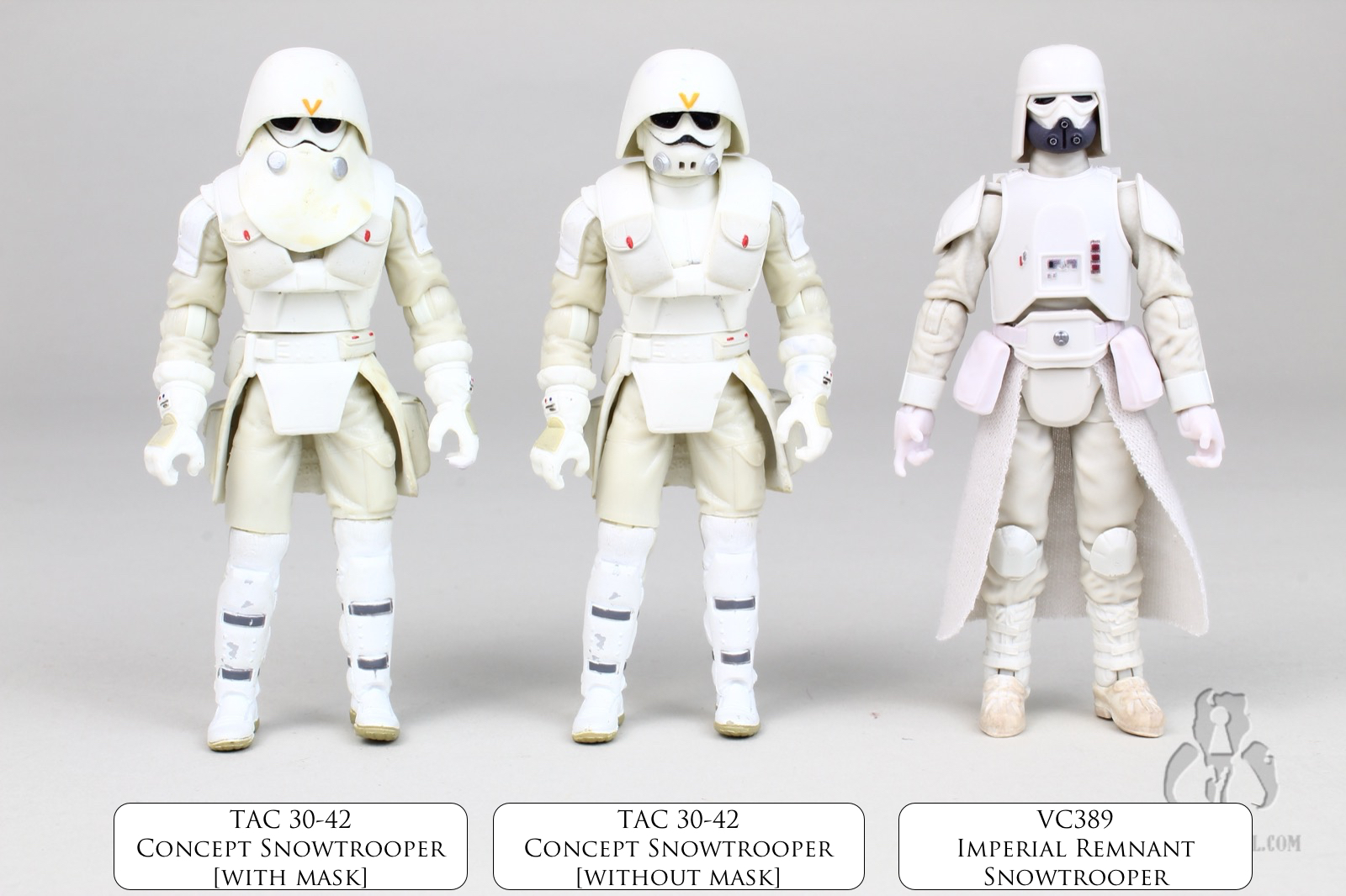 One of the things that occurred to me at first glance as I took this Imperial Remnant Snowtrooper out of the package is that it looked identical to the ESB VC349 Imperial Snowtrooper (Hoth Battle Gear), except for the face cowl. It brought to mind the McQuarrie concept Snowtrooper from the TAC line (pictured in the comparison shots in the gallery above.) I thought if Hasbro had just included a removable cowl, they could double dip this figure with collectors, and might get extra sales out of those looking to beef up their Hoth ranks.