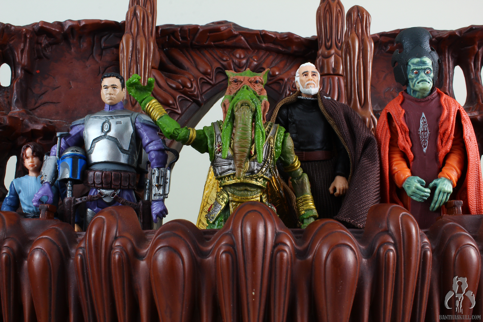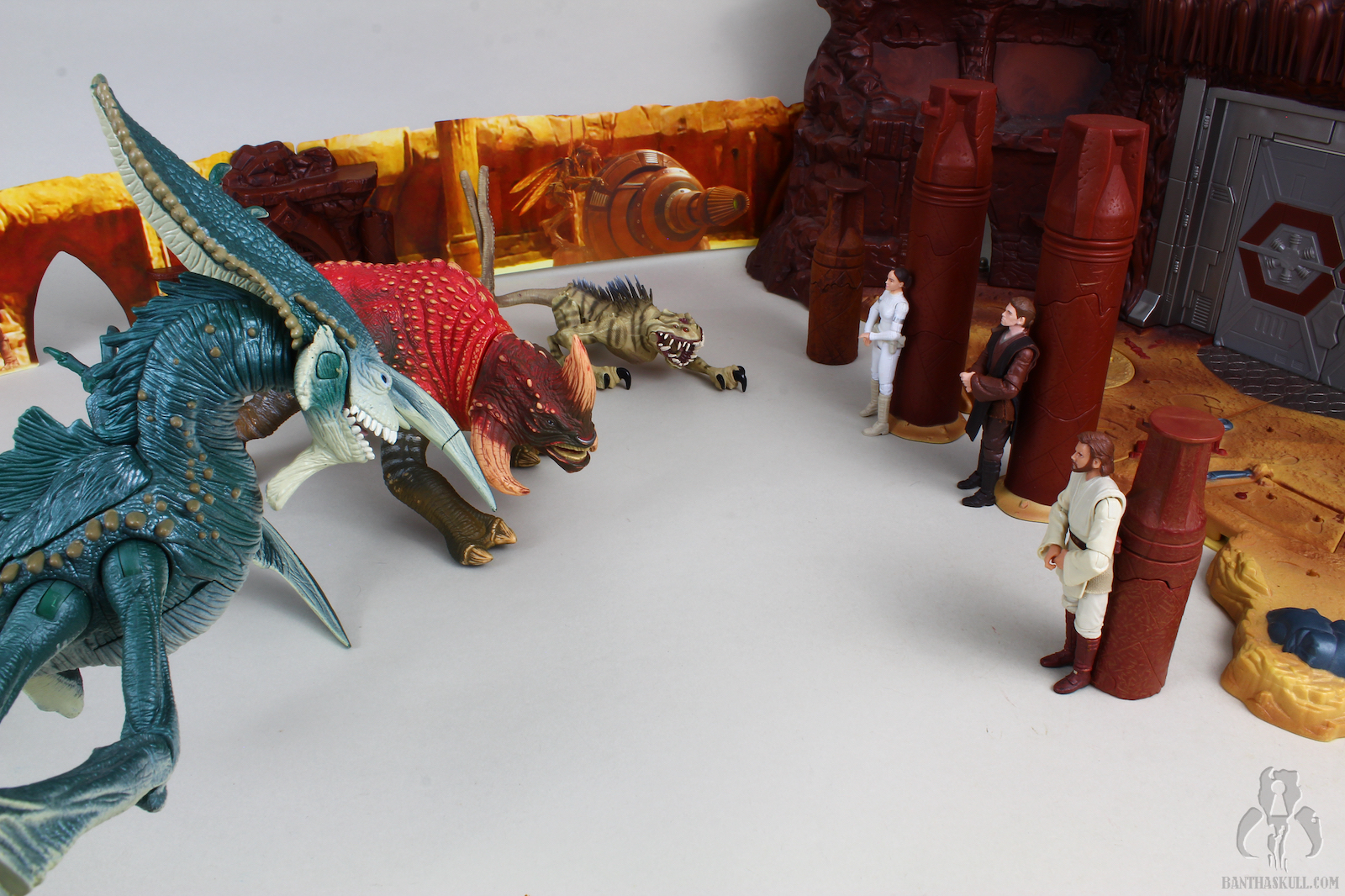 1. The most disappointing thing about the Arena Playset is the lack of space on the main balcony. There's some photo trickery here to make these 5 figures appear to fit (they don't). But worse, there is no room for the missing Rune Haako figure.