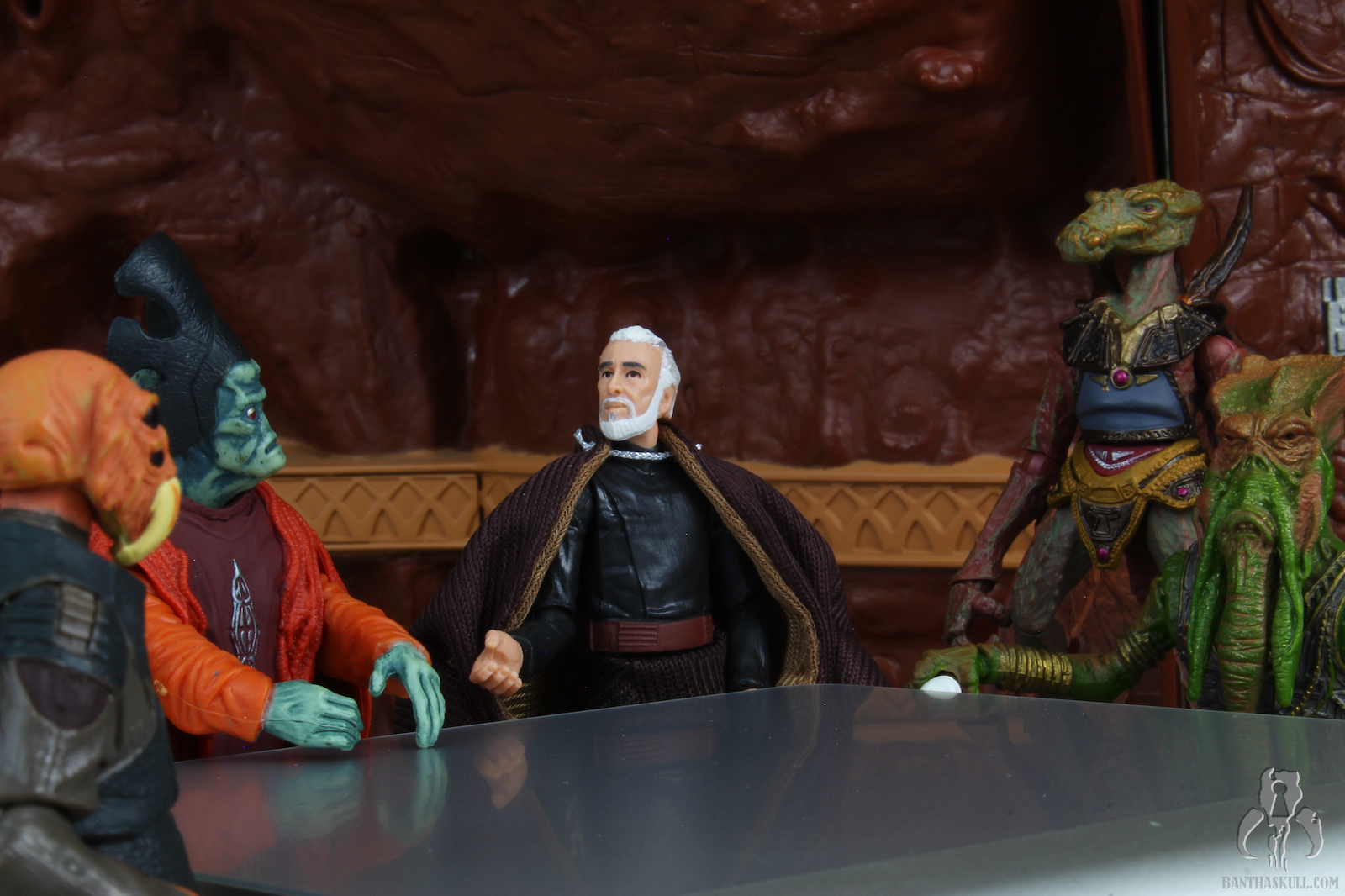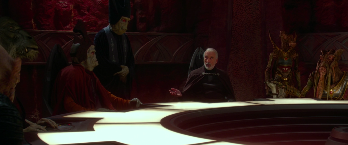 2. This is a composite shot, as the film shows the Separatists walking by only one or two at a time. The only figure missing is that of Rune Haako.
