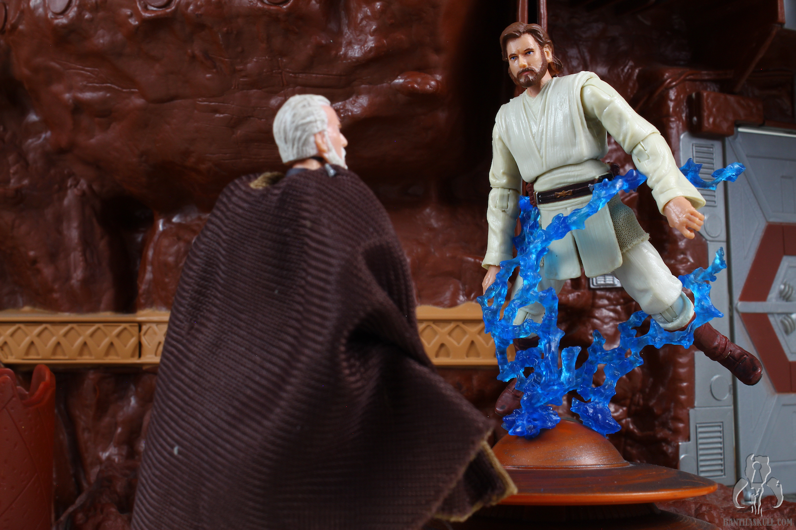 10. Count Dooku from the TLC Arena Showdown sets is the choice here. He's the same figure as the ROTS Evolutions figure, but has a "friendlier" face, good for negotiating with Obi-Wan. The Saga Jedi Warriors 4-pk includes the containment field device.