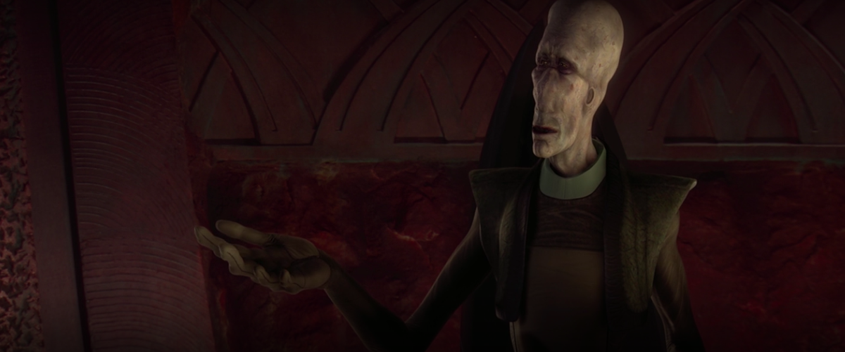 6. In this image inspired by the panning shot in the film, we have no figure for Rune Haako, Rogwa Wodrata, or TIkkes.