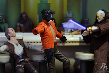 Here it is. Arguably the granddaddy of them all. Poor Ponda Baba's arm was the first dismemberment in what would become a tradition throughout The Saga. Baba also served as the first on screen victim of a lightsaber in cinema history. Of course there's the whole "different hand" debacle, in which Mr. Walrus was supposed to have flippers, but the pick up shot of the severed arm had a five-fingered hand. And then there's the blood. There probably shouldn't be blood. We can forgive Lucas's transgression from back in 1977, when all he had was some duct tape and a ViewFinder to make Star Wars. Anyway, Hasbro gave us all the options to display Ponda Baba before and after the "Slash-Heard-'Round-the-World," including a bloodied forearm. Well done!