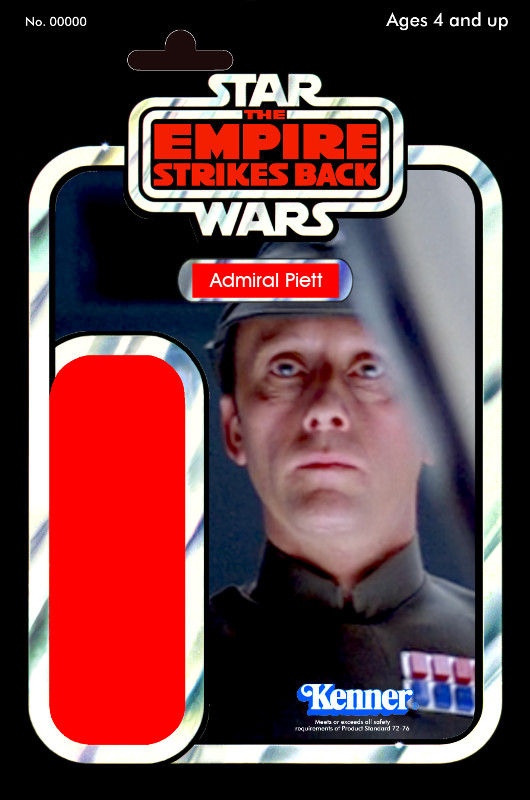 Anywho, it may be splitting hairs, but we've never been given an Admiral Piett figure ever. Or have we? The miserable POTF2 figure was titled "Captain Piett", but the figure was wearing the Admiral rank badge. We would ideally like both, but the winner of the our Readers' Choice Poll is for Admiral Piett. A Captain Piett figure would be a cheap retool as a pack-in or store exclusive.