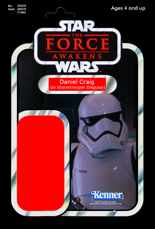 Making an honorary figure of Daniel Craig would continue the tradition of the likes of the George Lucas Stormtrooper figure from 2004. That was a George Lucas head sculpt on a CommTech Stormtrooper body. This would obviously need to use the First Order Stormtrooper body, but there's a problem. I can't stand removable helmets. They ruin the aesthetic. So this Daniel Craig honorary figure should feature a non-removable helmet. Trust us, it’s Daniel Craig under there.