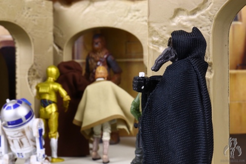 Okay, so after railing against a couple of redo figures, here we have an all new debut figure. Yay! Wait... it's Chalmun? Booo! BOOOO!!! I am almost as excited about this figure as I am for Qimir, which is to say, not at all. Now I have to find a spot for this jerk in my Cantina. The only thing I can think of is to have a spare alcove behind the bar's doorway, to represent his office, and stick him back there where he can't do any damage to my carefully curated screen-accurate/carefully researched/mish-mash from two filming sets scene. Chalmun exists in none of that research. As Chris said, it would seem that this figure is a one-off, with little to no ability for re-use, so it's a real drain on the new tooling budget. My favorite part is that most of it is new, with only a few part re-used from Chewbacca. Fortunately they didn't reuse the hands for Chalmun...but they did reuse Chewie's hands on Chewie himself, which are the most frustrating parts that were screaming to be resculpted but weren't. Awesome. Good times.