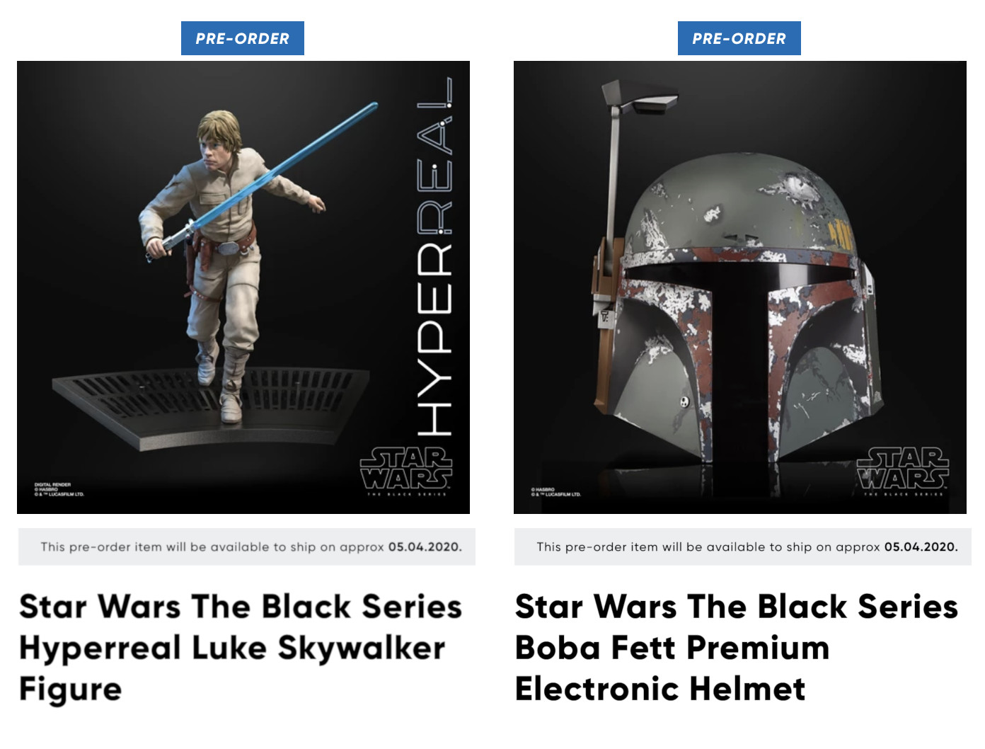 Much to the consternation of the fan base, only two new collector products were announced during Hasbro's recent SDCC panel presentation that appeal to the collector base. They were the HyperReal Luke Skywalker and the Black Series Boba Fett helmet. Both are obviously sourced to Episode V. It would make sense that the 40th anniversary would receive product support just as the 40th anniversary of A New Hope did, but I found the estimated release date to be slightly curious. Both are slated for "approximate" release dates of May 4th, 2020 ("Star Wars Day"):