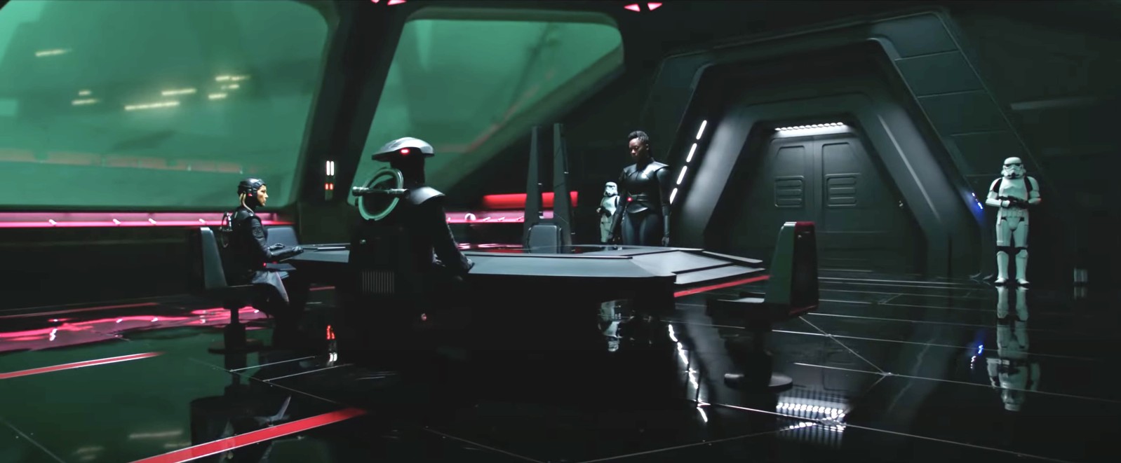 Love it or hate, the Inquisitors have made the jump to live action. Some fans may think this jump is being made directly from the Rebels animated show in which they first appeared, but the Inquisitorius has previously appeared in comics and served as the main antagonists in the Jedi Fallen Order video game. The finale of that game sees Cal and Cere traveling to a water moon name Nur in order to recover the stolen holocron from the Inquisitors' underwater stronghold, Fortress Iquisitorious. In addition to seeing the Inquisitor shuttle approach the fortress, we also get this interior look: