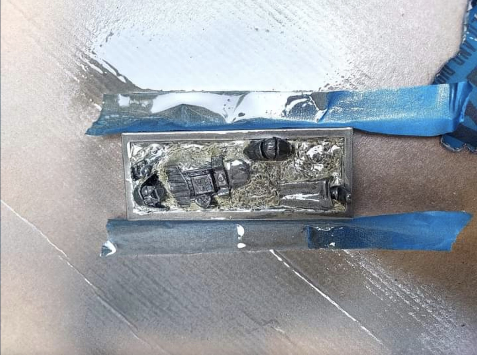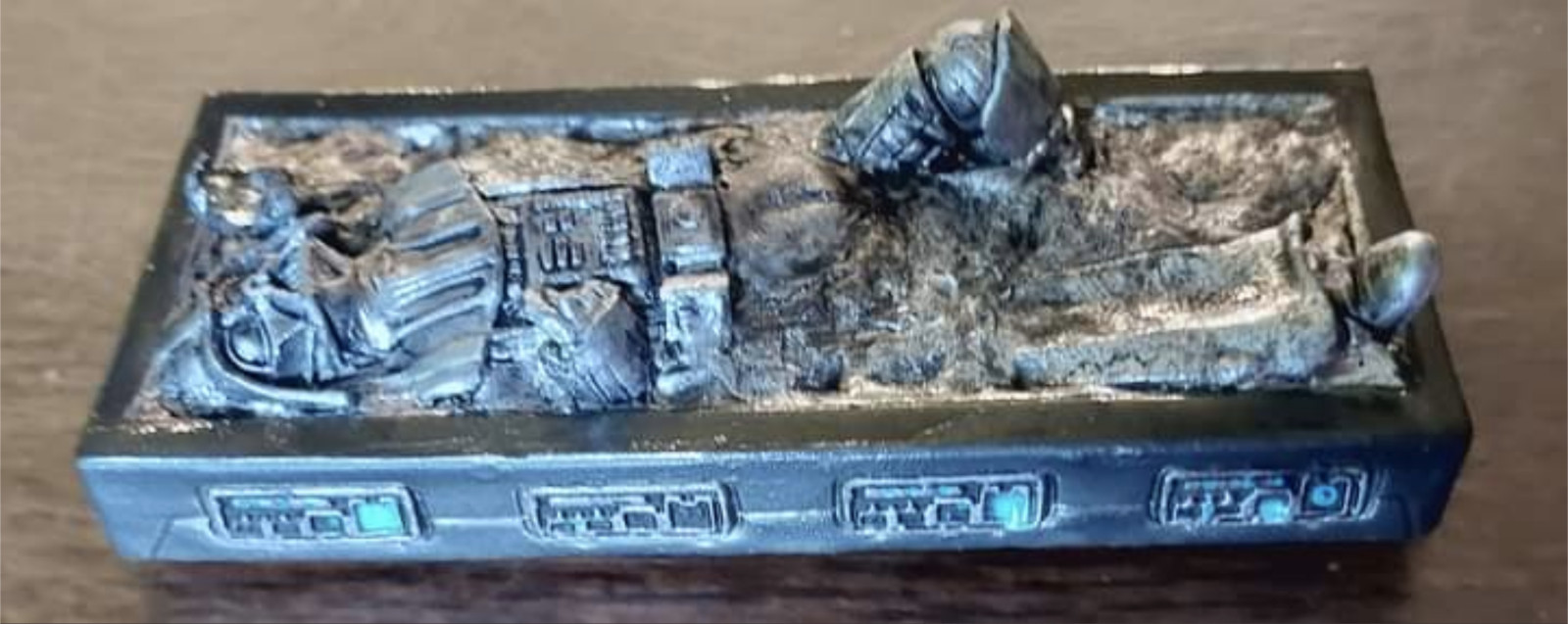 8) Mask everything but the carbonite and spray paint metallic silver.
