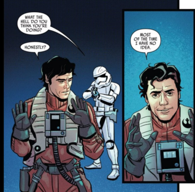This exchange between Poe and a stormtrooper pretty much sums up the Sequel Trilogy