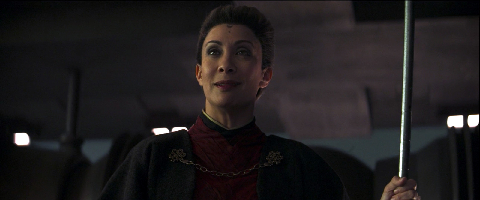 Ahsoka eventually reaches the village wall where she confronts the town’s iron-fisted magistrate. Ahsoka is after a piece of information which the magistrate refuses to give. In so many words, Ahsoka lets her know she’s not asking. The Magistrate, Morgan Elsbeth, threatens to punish the town’s citizens if Ahsoka doesn’t back off. Ahsoka's counter is to demand the Magistrate’s surrender, gives her one day to comply, and then disappears into the mist. The Magistrate’s capo, named Lang and played by Michael Biehn, declares they will be ready for Ahsoka’s return.