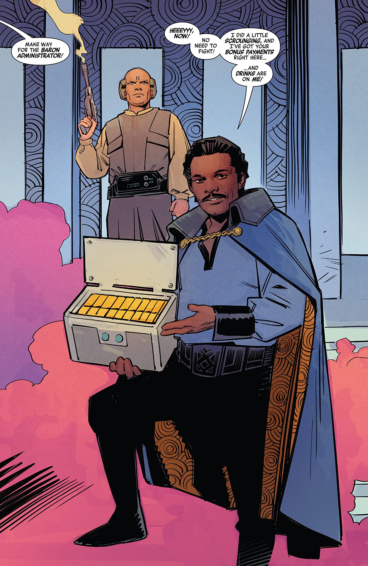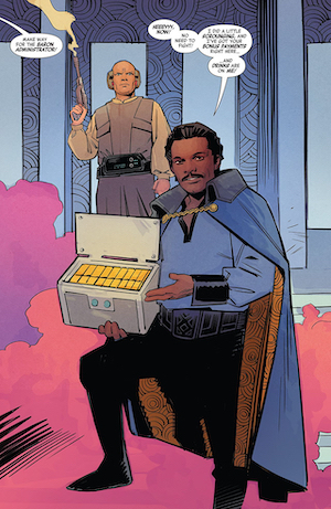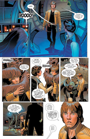 In Lando’s story the baron administrator of Cloud City is basically running out of money. He can’t pay his creditors, he can’t pay his employees. Maybe not the same stress as having Darth Vader towering over you, but maintaining good credit is very important, let’s be honest. The thing about this story is that it shows Lando becoming more and more responsible and taking the welfare of others into account. It’s a good follow up to Charles Soule’s Lando mini-series. Lando gets an offer to make A LOT of money by running a business for someone else, but when he sees what the cost of this business really is (deportation of a native species and the implied harvesting of their organs; so, yeah, pretty bad) he does some very unprofitable things to help the oppressed. When Lando uses the rest of his private stash to pay his people, we see that he really is committed to the people of Cloud City as mentioned in the Leia story. And then there’s the Luke Skywalker story. More than any issue in this collection, Luke’s story is open to much analysis and speculation. It takes place shortly before ROTJ and features a green bladed lightsaber wielding Luke as he accompanies a Rebel raid on an Imperial mining platform. It shows us Luke in his prime and also gives us some invaluable glimpses into what the average Rebel soldier thinks of this already larger than life hero. The real depth of the story is displayed when the Emperor, having grown tired of Vader’s fruitless search for the boy, reaches out to tempt Luke through the Force. He offers two temptations: the first to give up the fight, the second to fight only for his own glory. Luke’s third temptation will of course occur in ROTJ; and one could argue that the last temptation of Luke transpires in TLJ.