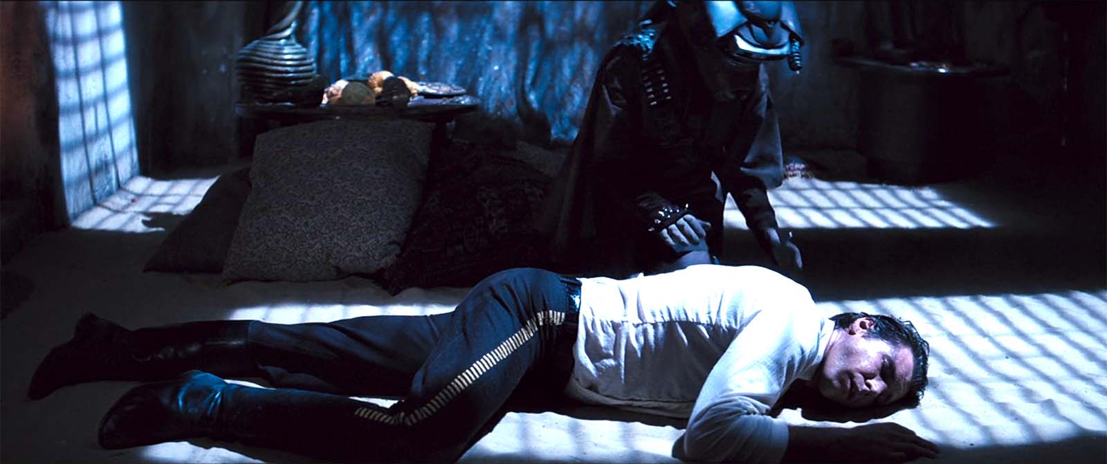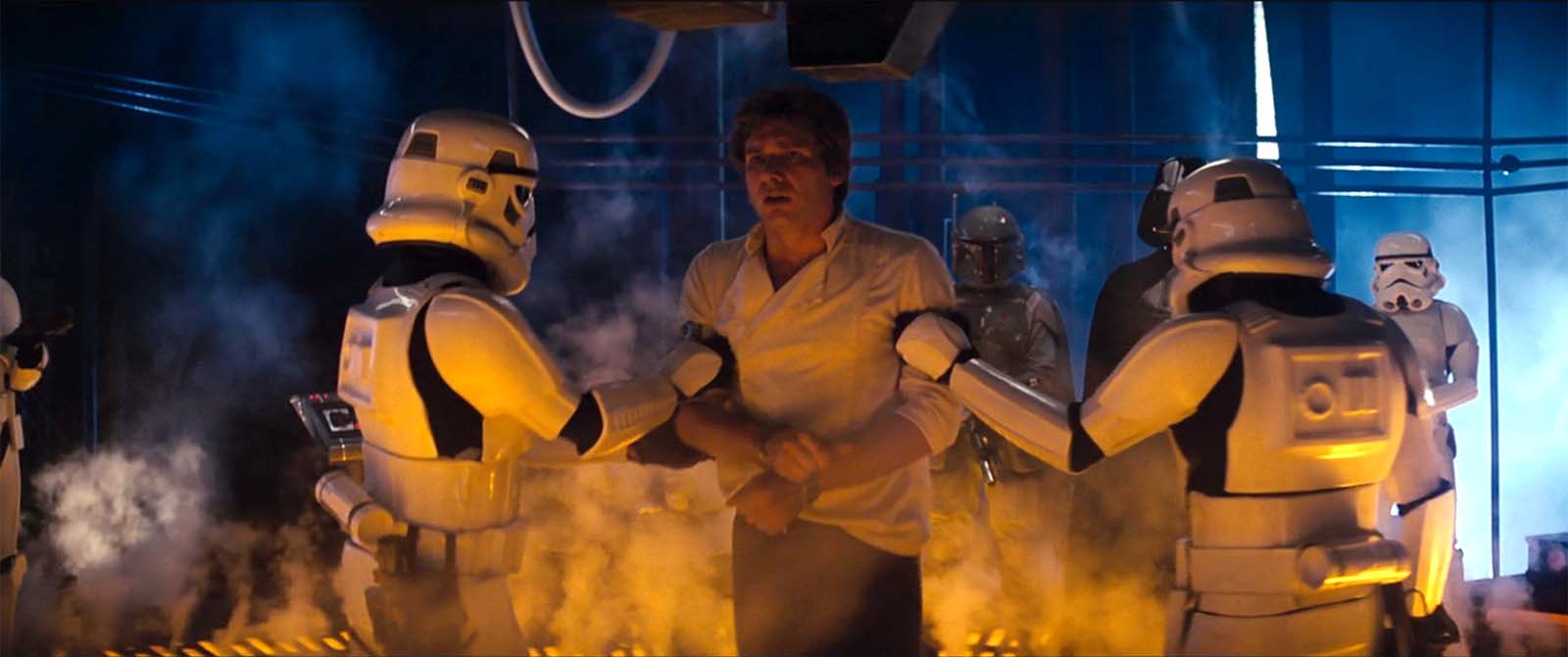 But when Han emerges from the Carbonite block in Return of the Jedi, his shirt is neatly tucked into his slacks with his belt showing: