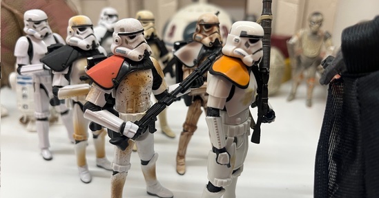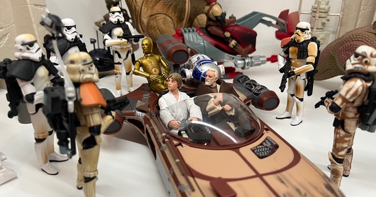 It wasn't all that long ago that I was utterly unaware of such trivial matters, aside from being cursorily cognizant of the different color pauldrons. But even then, I was a victim of Hasbro's nonsense (which I'll get into shortly). I believe I was first made aware of the sandtrooper variations by a former Banthaskull colleague. Many of us dissect the Cantina, and how there was filming at two different sets in two countries which meant that many of the final shots don't actually make sense for the sake of continuity, like Ponda Baba's hands, or Zutton's ability to teleport, or how there is no actual place for the Modal Nodes. Madness! Well, it turns out that the Sandtroopers are kind of in the same boat. Many have tried to do the research to piece together who is who, wearing what armor combo, and carrying which weapon. If you do the frame by frame thing like a true nerd, you probably can only piece together about 90% of what you'd want to know. But even with the magic of high def and freeze frame, there are still some inaccuracies, continuity errors, and costuming issues that ruin the illusion. If you try to pull an Icarus, you're going to get burned. Nevertheless, my goal is to do my best to have screen-accurate dioramas using whatever Hasbro has to offer, without delving into customization or 3D printing. The furthest I get into those realms are the occasional weapon or gear swap.