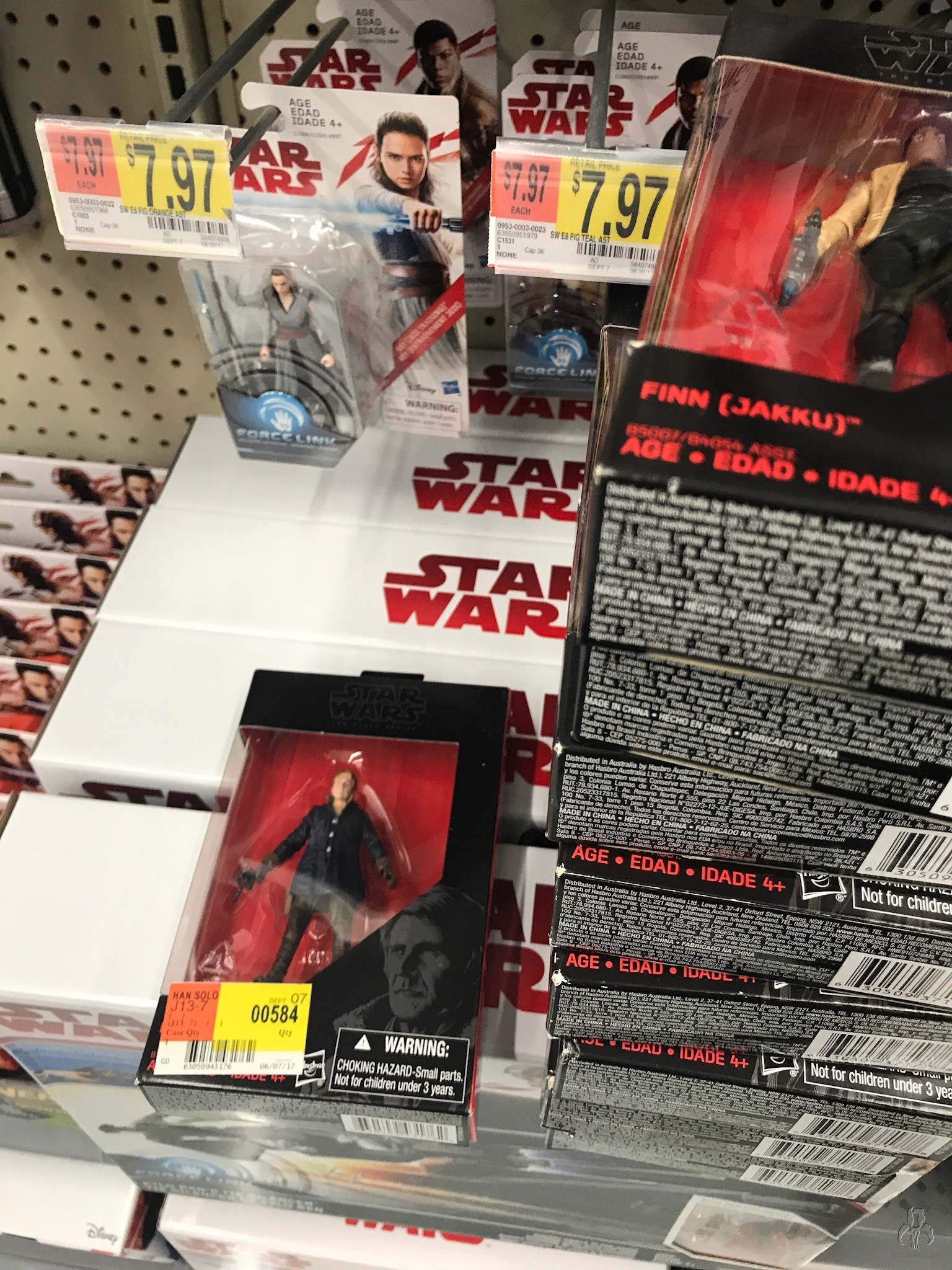 Visited this store Saturday night. I was here a few days earlier and found only the older figures. I had assumed this store stood no chance of getting a replenishment, but was surprised to find remnants of at least one TLJ case. If it was a single new case, then nobody was interested in the Rose figure until I picked one up myself, along with the last Luke. This was the first time I had seen new 3.75" SA figures in the wild since the Rogue One wave first came out.