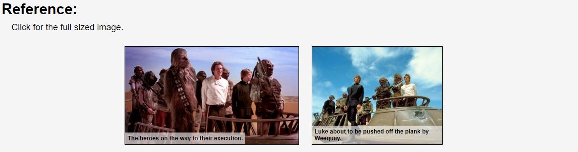 The scenes will be organized by movie in the menu. We were planning to launch this feature with the Prisoner Skiff scene from Return of the Jedi. As you're well aware, all the awesome Jabba's related announcements at Toy Fair means that entry would have been instantly obsolete. We'll get to that scene eventually, but we'll wait for the awesome new Skiff and Vedain to be released. Instead, we're going to launch tomorrow morning with the bounty hunter "Executor Bridge" scene from Empire Strikes Back. It's a simpler scene, but one that we could quickly pivot to once our Prisoner Skiff plans were scuttled. It should give you a taste of what's to come, as well opportunity to provide us feedback. The future SCENE IT's will be much bigger in scope. For now, we'll explain the feature using a glimpse at the on-hold Prisoner Skiff Scene It. Note this entry is still a work in progress and not a final product: