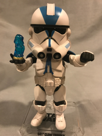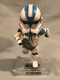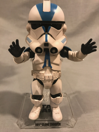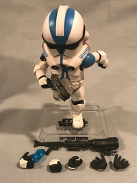 Super quick review: When I spotted a pic of one these on display at a recent convention, I had to add it to my 501st focus collection. It was a heckuva time finding one, but BBTS came through. This sports 16 points of articulation (or "areas" if you must; this is all very confusing, Paul!), so the posability is tremendous. He comes with 3 pairs of hands, plus a seventh hand that holds a hologram of Darth Sidious. He comes with his blaster and his rifle. Even the vertical post on the clear stand (with name label) is articulated with a claw, allowing for a veritable cornucopia of poses. The overall feel is reminiscent of a squashed Sideshow figure. He's high quality in both structure and paint applications. I honestly would have had no interest in this figure line, but I had to have the 501st. Now that I do, I would recommend checking out the available characters. Beast Kingdom does Star Wars and Marvel.