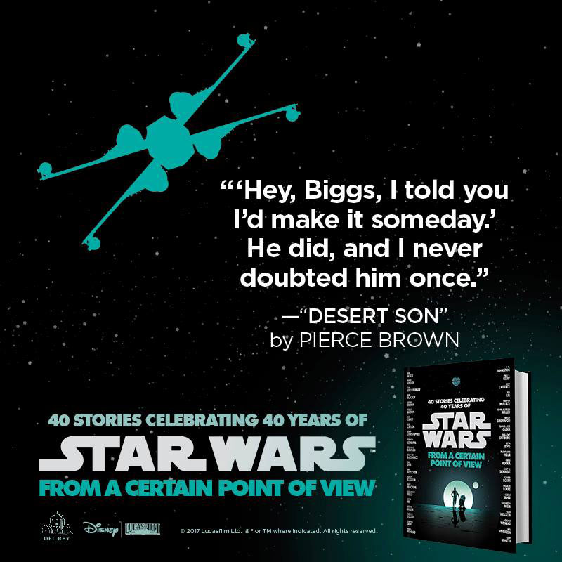 "Desert Son", by Pierce Brown, comes from the perspective of Biggs Darklighter. This story follows "Duty Roster."