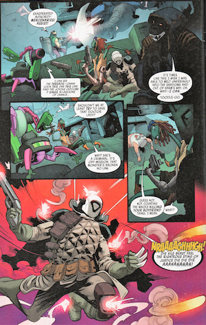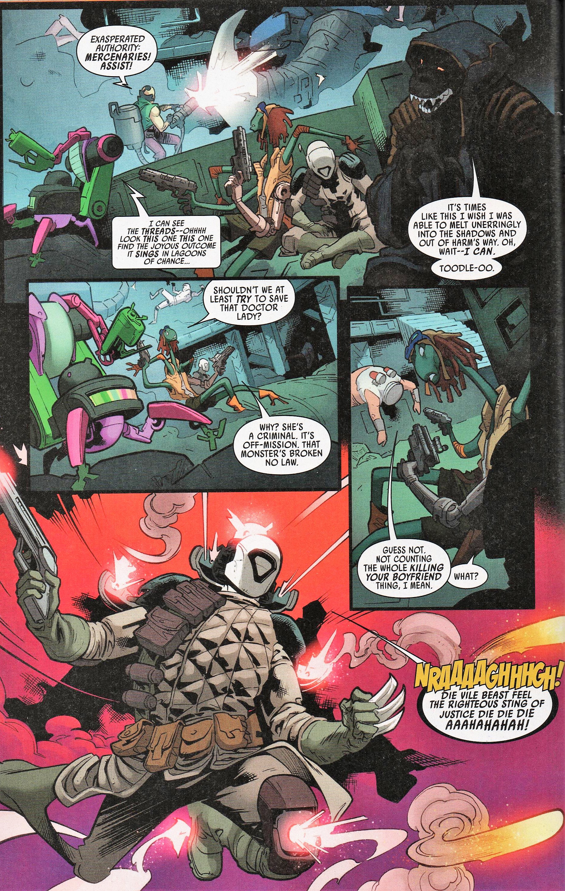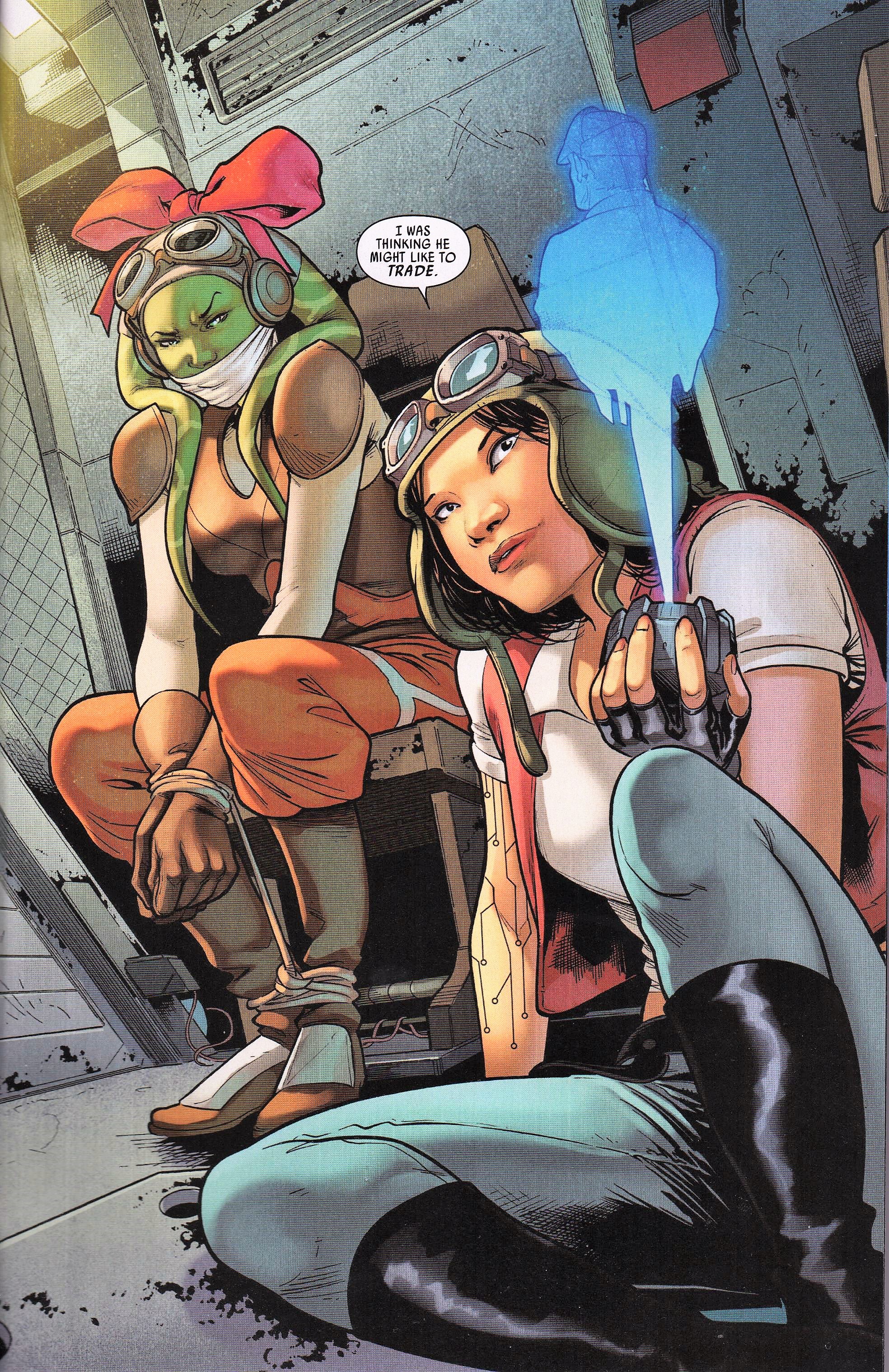 What else? Glad you asked. One of Aphra’s mercenaries in the story is a reprogrammed first gen droideka designated Dek-Nil. In the course of re-programming him, Aphra tinkered with his existential circuit which is presumably why he talks in a quasi-poetic sing-songy way. It’s the kind of thing that the writer probably thought, “this will come off as a little annoying but a lot of fun”; when, in fact, it comes off as a lot annoying and not at all funny. What of the good? The art; I have no complaint about the art in this book. Emilio Laiso takes over from previous artist Kev Walker. Kev’s stuff was good; really nothing wrong with it except for some minor stuff in the first volume; but I’m going to say I like Laiso’s style better in this book. Aside from the aforementioned complaints, the story is really not that bad. The decision to pursue the whole Triple Zero and BT unleashed thread started in the previous volume is smart. Since his introduction, Triple Zero has been a great source of amusement. The inclusion of Hera was also a good move. Remember that the issues with her were originally released between March and April of 2018, so they actually sandwiched the Rebels series finale. Aside from her in name only cameo in RO, this is really the first look we get at Hera’s post Rebels life. Having her here works because it’s better than shoe-horning one of our movie heroes, like Luke or whoever, into the part; or using some rando that we don’t know or care about.