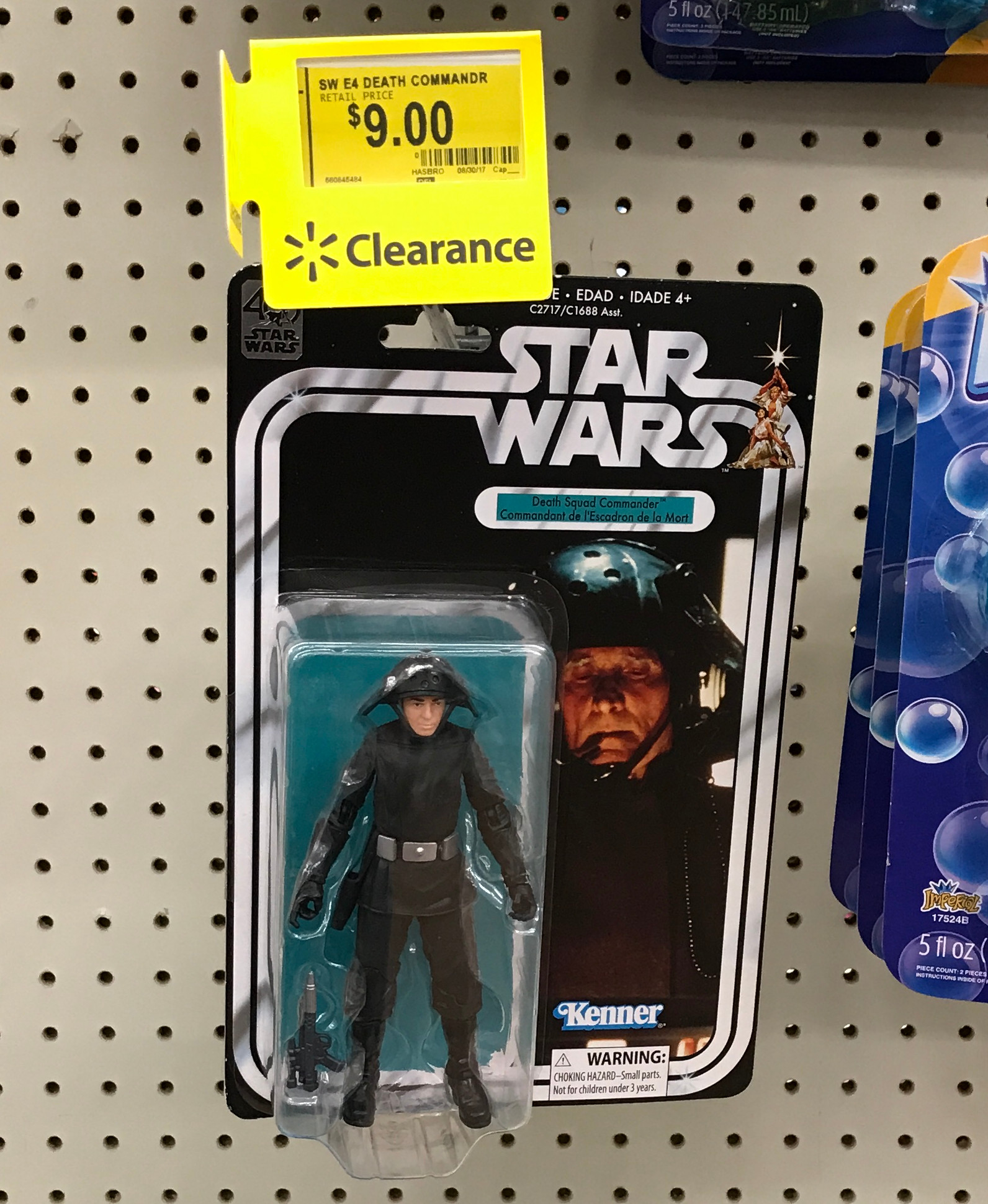 It looks like the 40th Anniversary figures are hitting the clearance section at $9 (ymmv). At this particular store, the 40th Anniversary figures stopped scanning last week with the dreaded "please see associate" message. I can confirm this figure is now once again scanning at the indicated price on the tag. Of course the (colloquial) irony is that most Walmart stores are sitting on year old 6" product in the red accented packaging, which are back to full price, but the one 6" product, that actually sells through, is now on clearance.