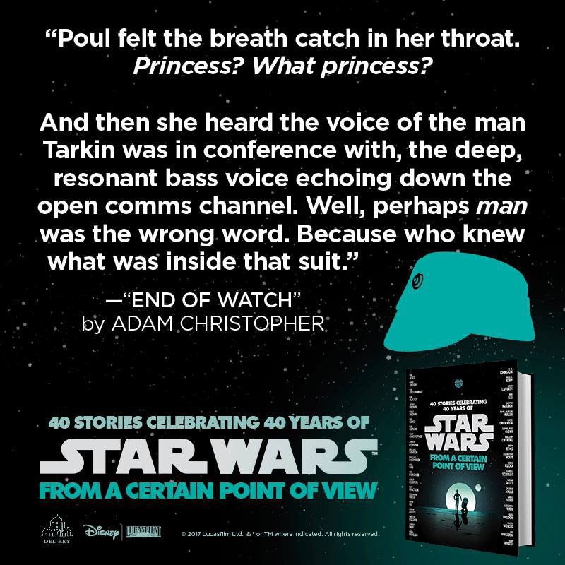 "End of Watch", by Adam Christopher, comes from the perspective of Pamel Poul (and is narrated by Janina Gavankar, who plays Iden Versio in Battlefront II). This story follows "Bump."