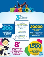 HASCON will bring Hasbro’s most iconic and imaginative brands to life like never before, including TRANSFORMERS, MY LITTLE PONY, NERF, MAGIC: THE GATHERING, PLAY-DOH, MONOPOLY and G.I. JOE and exceptional partner brands such as BEYBLADE BURST, DREAMWORKS TROLLS and SESAME STREET. Fans will get a sneak peek behind the Hasbro curtain during the three days filled with exciting first-look previews and panels from Hasbro’s biggest television and movie series, including Hasbro’s TRANSFORMERS: RESCUE BOTS, LITTLEST PET SHOP and MY LITTLE PONY: FRIENDSHIP IS MAGIC as seen on Hasbro’s joint-venture television network Discovery Family.