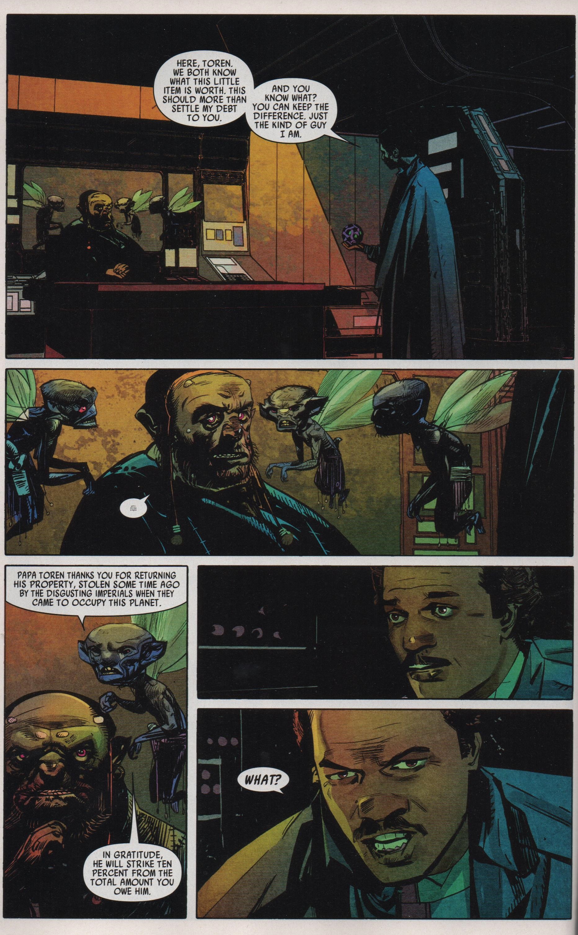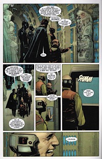 We know that sometime shortly after this story Lando comes to be in control of Cloud City. Was this time as a reputable businessman his first attempt to carry out Lobot’s advice? Maybe. We all know it didn’t turn out too well, but we also know what happens next: Lando Calrissian, smuggler/con-man/gambler/playa becomes a hero of the Rebellion. The art in the series complements the story quite well. The finished product almost looks to be painted. The colors are muted, sometimes almost mono-chromatic. Even though I usually prefer an art style fits into the more “pop” comic book style this fits in well with the subject matter. There is a good sense of the evil and doom that hang in the air on board the Imperialis. Most of the character designs are pretty good, but Papa Toren is the real stand out. He’s just got that weird grotesqueness that is so appealing, and his ghoulish little elves that communicate for him are the cherry on top. On the other hand, Aleksin and Pavol look like a couple of Black Panther cosplayers.
