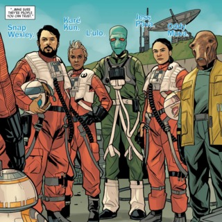 Black Squadron consists of Poe Dameron, Temmin “Snap” Wexley, Kare Kun, Jessika Pava, L’ulo L’ampar and technician Oddy Muva. L’ulo was a member of the Rebel Alliance and flew with Poe’s mother Shara Bey as part of Green Squadron.