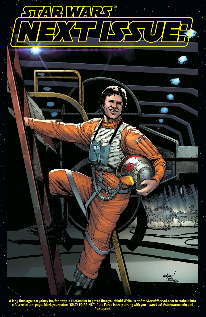Star Wars Volume 9: Hope Dies collects issues 50-55 of Star Wars written by Kieron Gillen with art by Salvador Larroca as well as Annual 4 written by Cullen Bunn with art by Ario Anindito, Roland Boschi, and Marc Laming. A back up story in issue 50 has art by Guiseppe Camuncoli and Cam Smith. It was released on December 11, 2018.