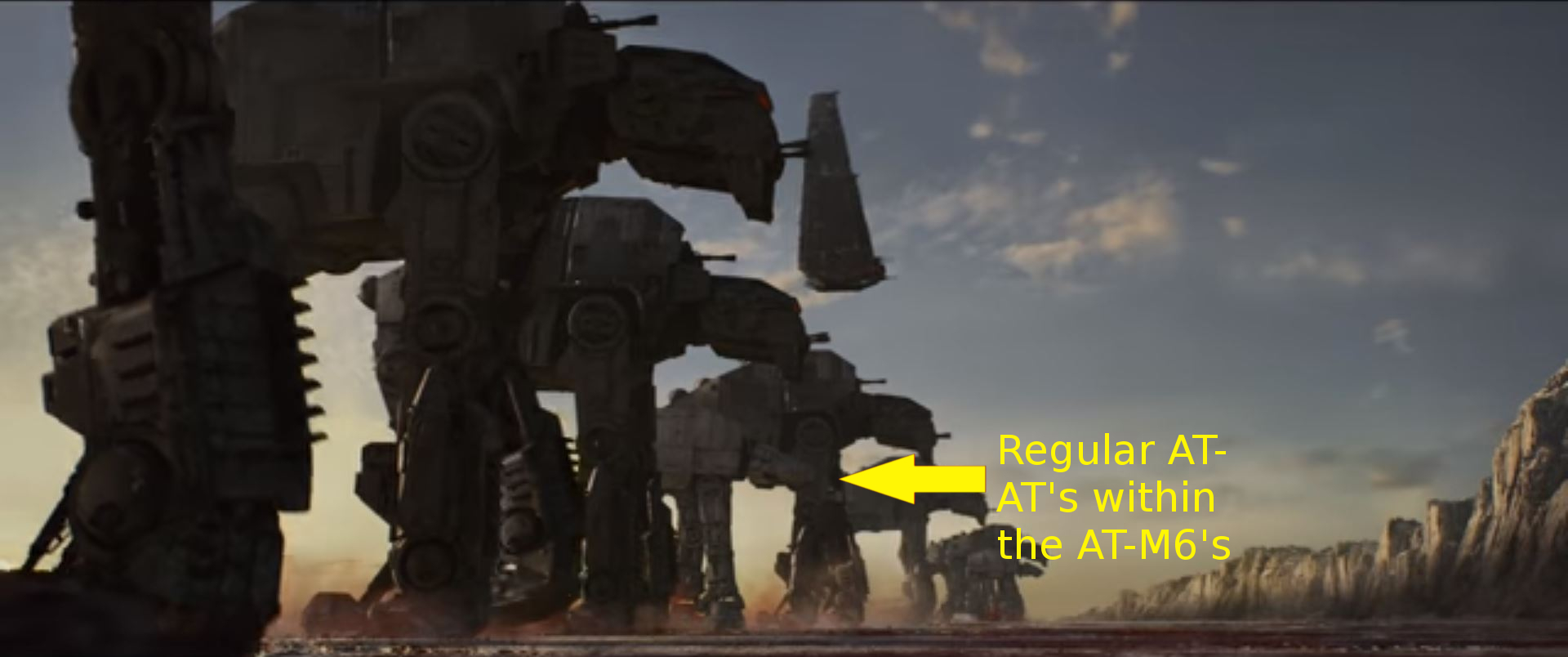 There are regular sized AT-AT's mixed in with the massive All Terrain MegaCaliber Six walkers.