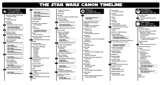 Bantha Skull's official EOD suit happens to be at the dry cleaners, but thankfully I didn't need one since I could avoid going to Reddit directly because io9 did it for us. Reddit user "SenatorConfer" (who may or may not be a fan of the Cleveland Barons) put together a graphical timeline that shows the current canon, following Disney's destruction of the Expanded Universe.