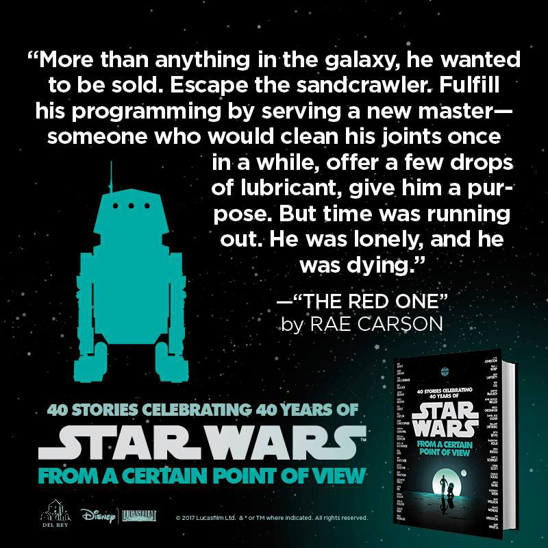 "The Red One", by Rae Carson, puts us inside the dome of R5-D4. This story takes place more or less concurrently with the previous two entries, "Stories in the Sand" and "Reirin." The author gives new life to R5-D4, which actually mimics to some degree an old EU Infinities tale, Skippy the Jedi Droid. This version is quite a bit less far-fetched, but we see that the new canon continues to mine the old EU for ideas, and in some cases, nearly resurrects those old stories. Nevertheless, the story is decent, and continues the book's concept so far (minus the preceding tale, "Reirin"), of telling tales from the points of view of minor characters that we see in the movies.
